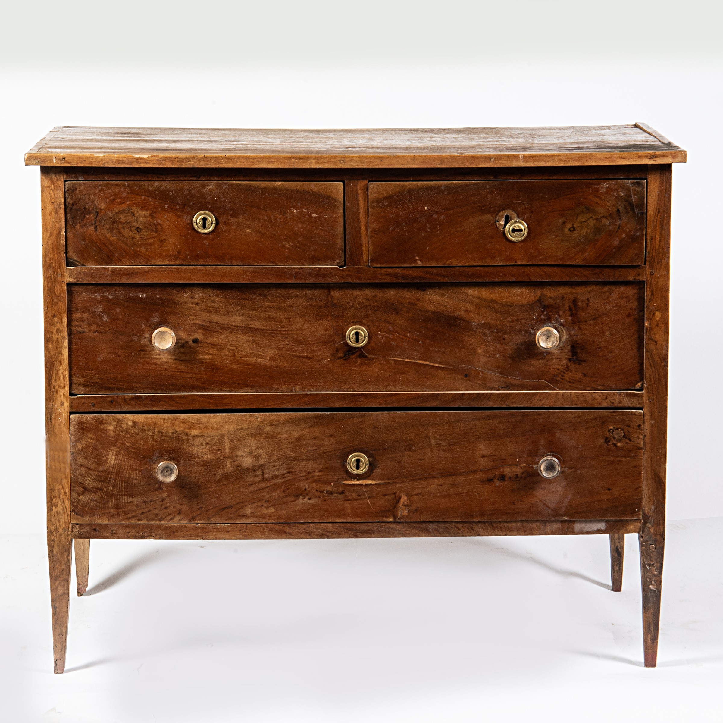 in noce a quattro cassetti, gambe troncopiramidali, cm L118xP57xH97 da restaurare