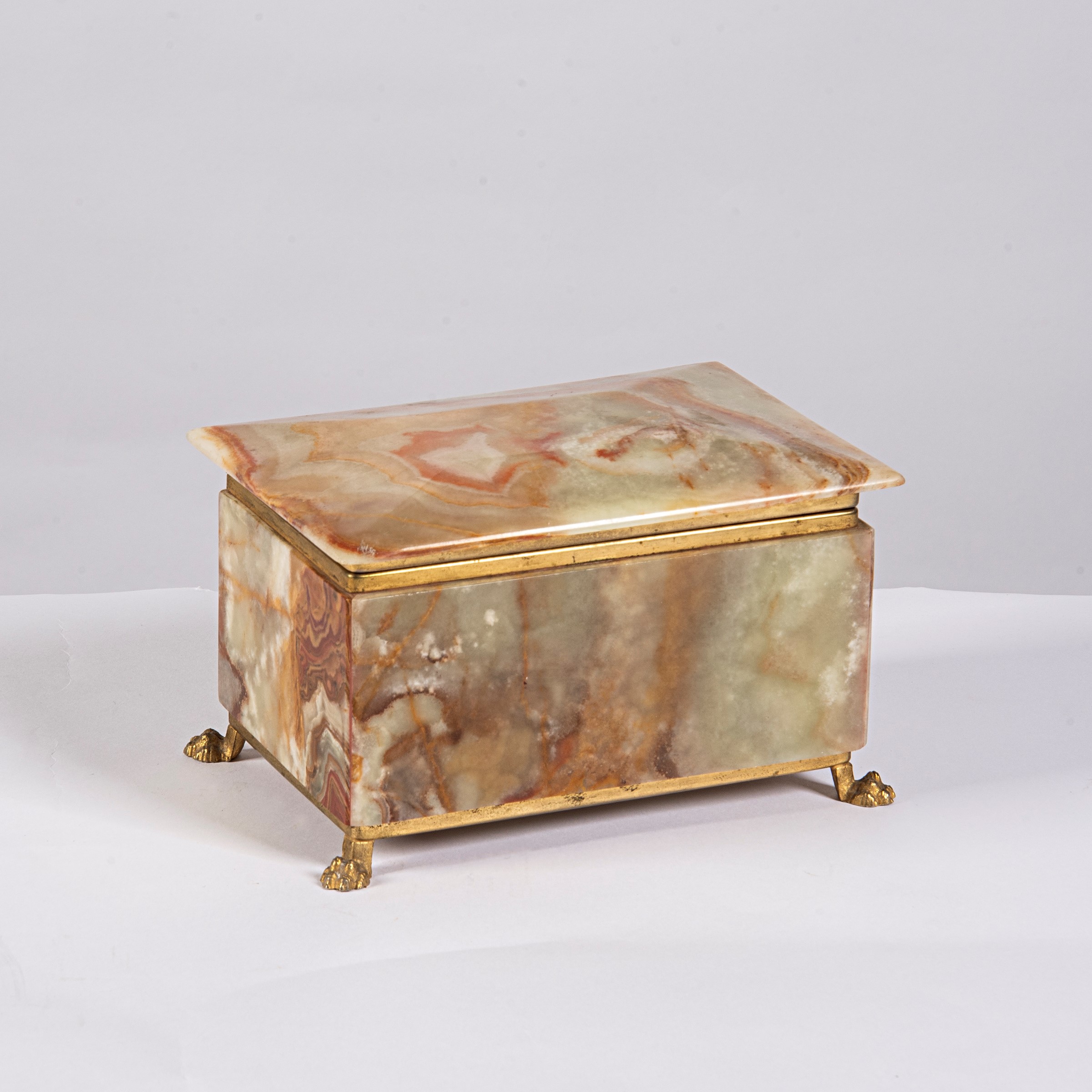 in onice ed ottone, piedi felini, cm L20xP13xH12, difetti