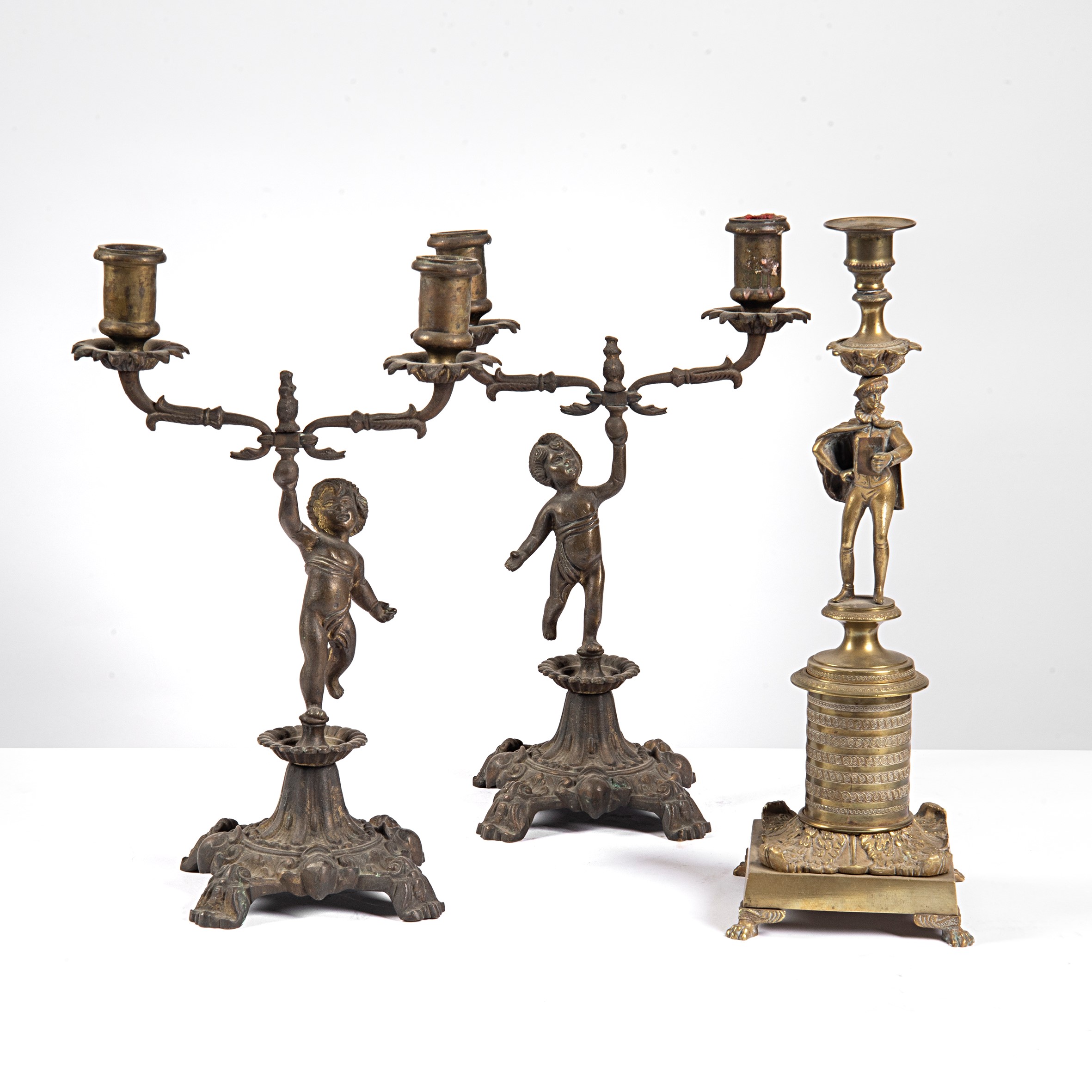 in bronzo con sostegno a figura, ad una fiamma, alt. cm 37