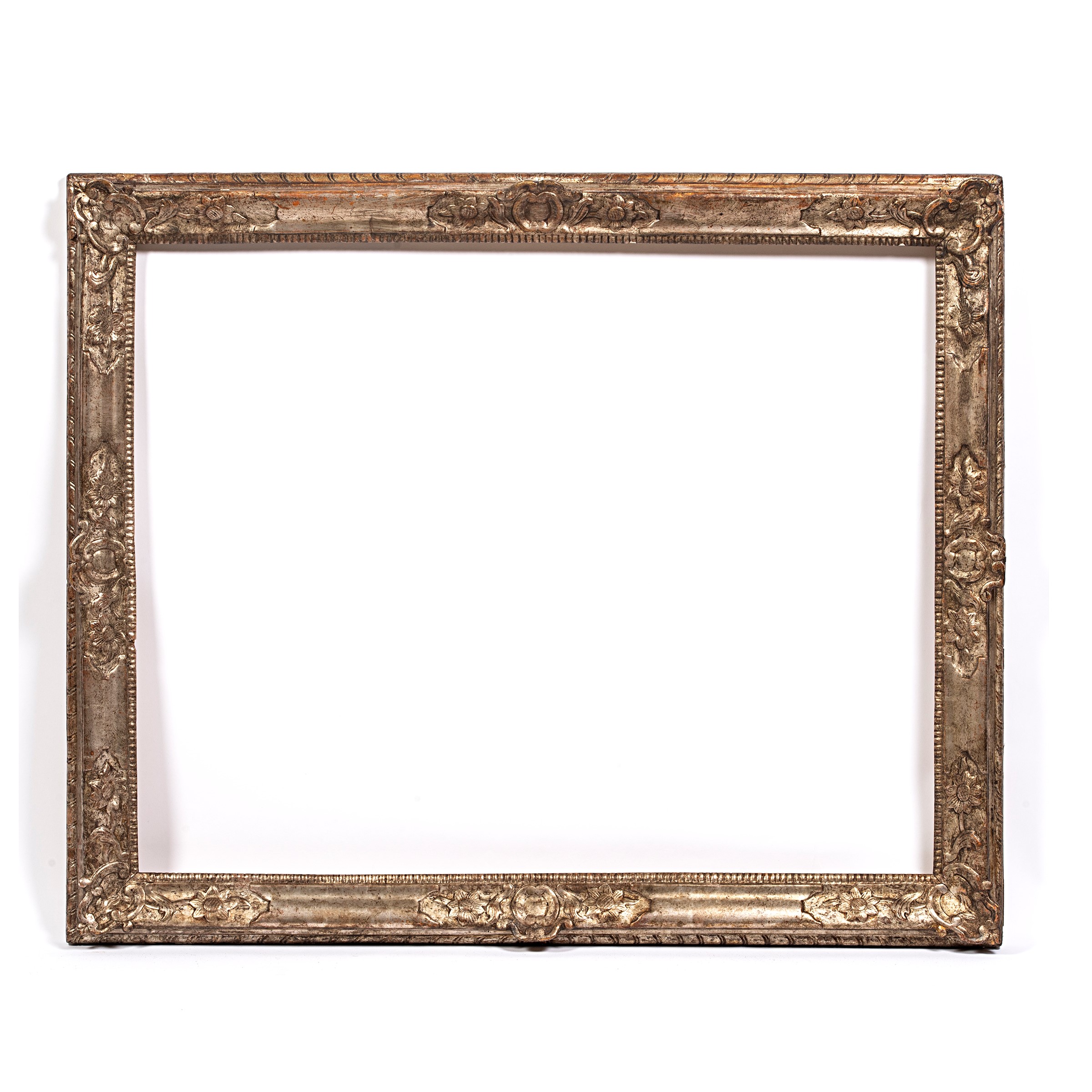 in legno intagliato e in parte argentato, cm 105x87, luce cm 93,5x75