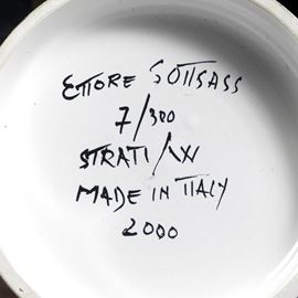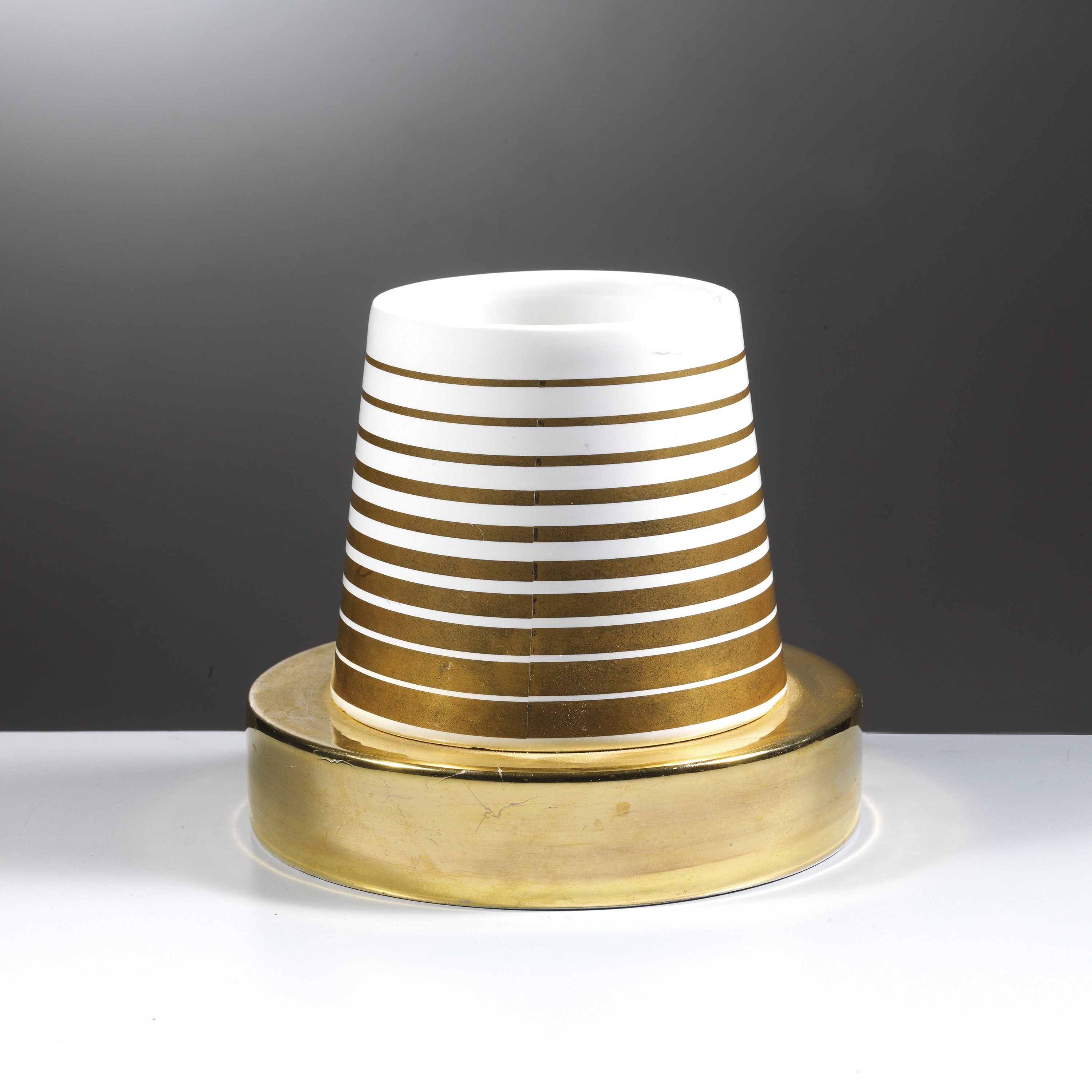 in ceramica invetriata nei toni del bianco e dell’oro, firmato, datato e numerato 7/300 sul fondo, produzione Italia, 2000, alt. cm 14 e diam. cm 16