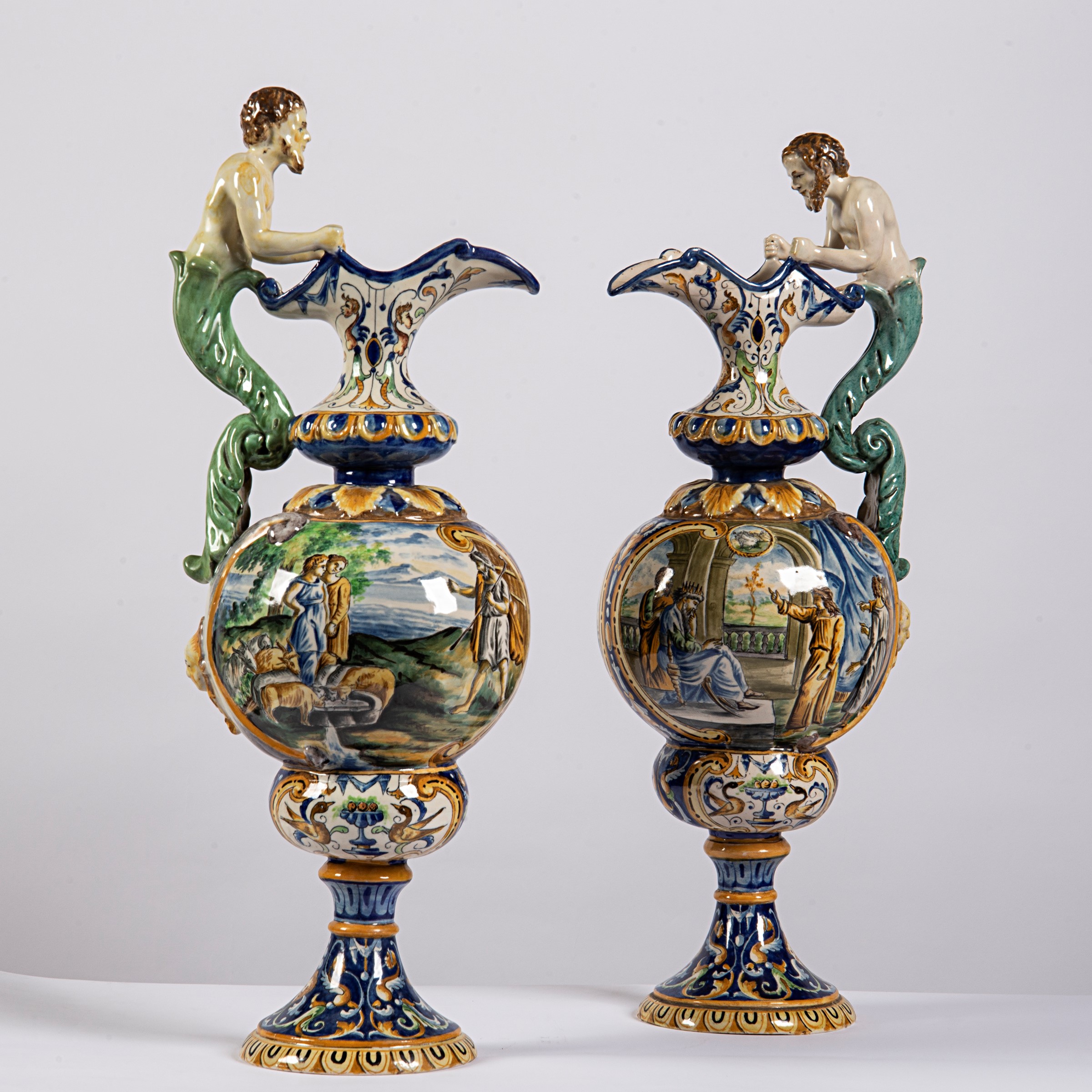 in maiolica decorata con manici a figure, cm 24x65, difetti