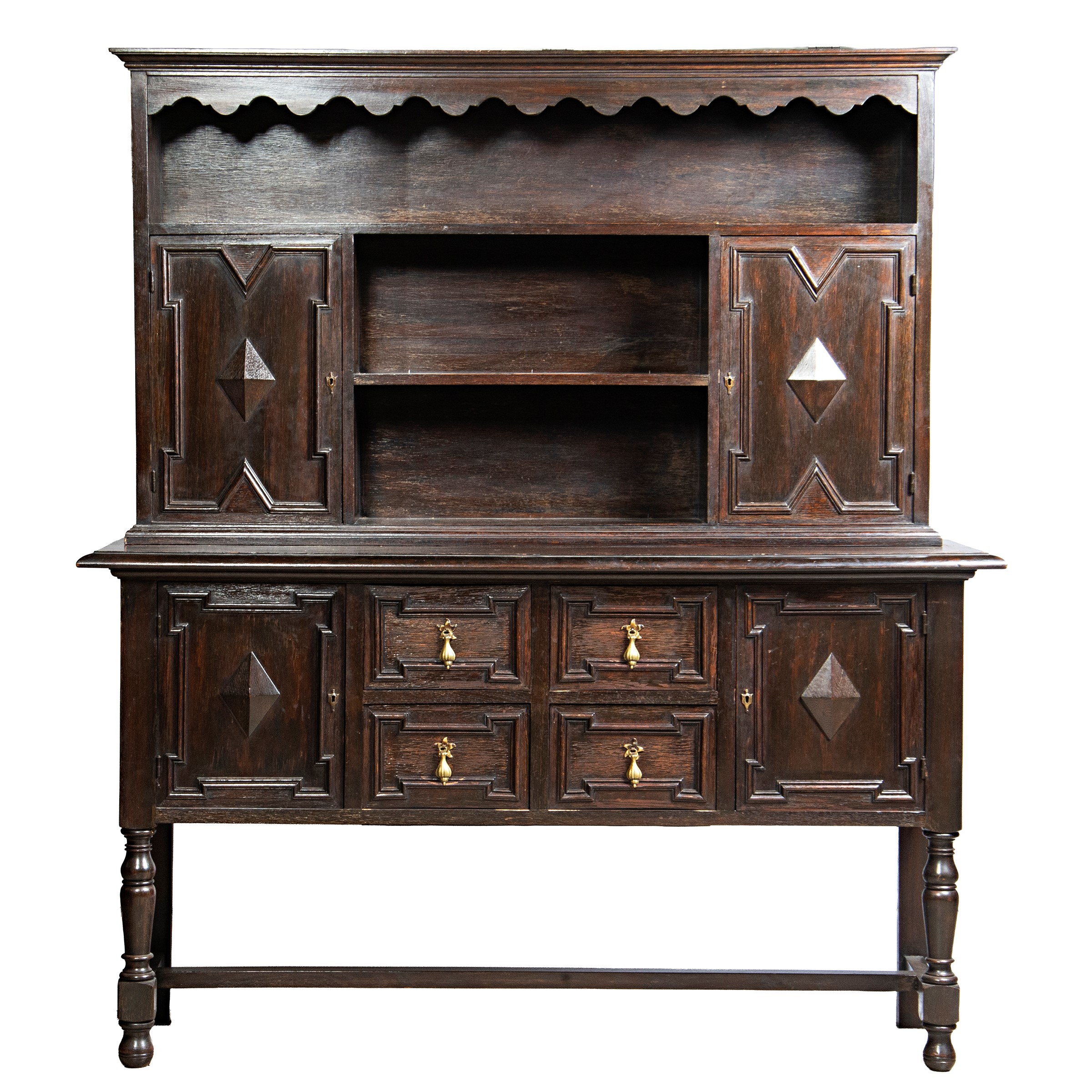 in rovere, quattro cassetti, due sportelli, vani a giorno, cm L183xP54xH212
