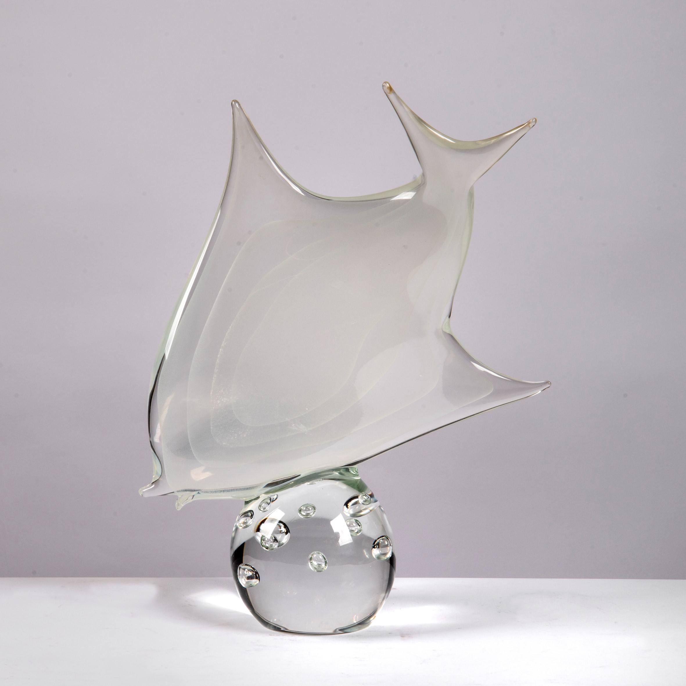 scultura in vetro con inclusioni e base circolare, cm 32x41