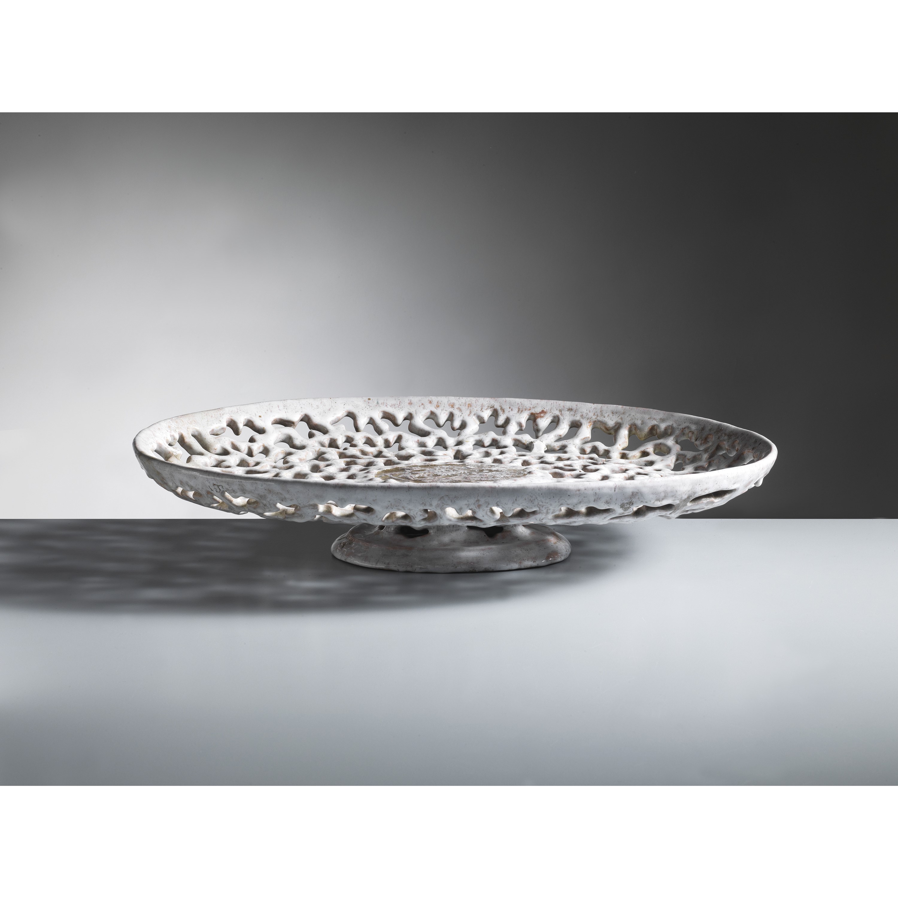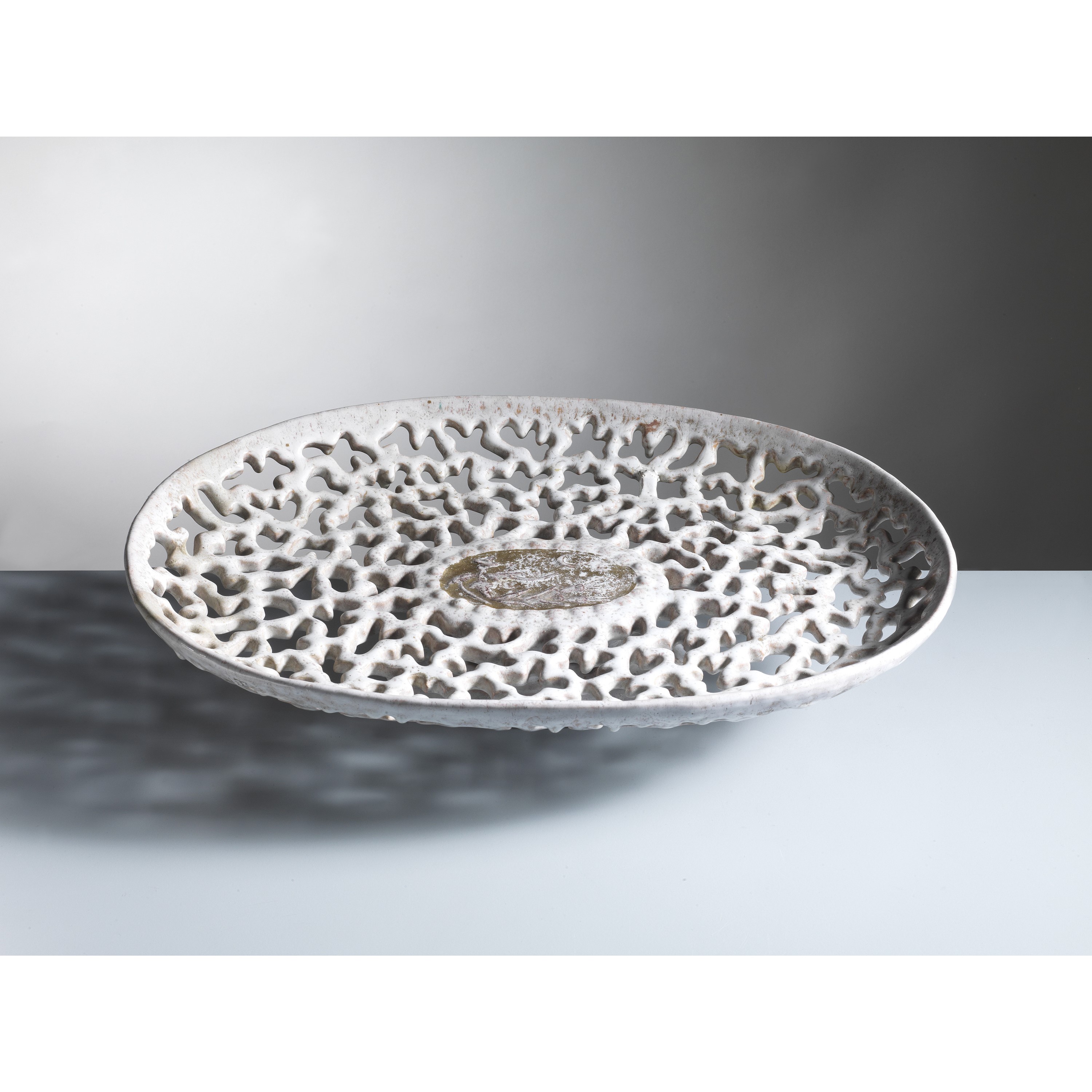 in ceramica invetriata nei toni del bianco, firma sul fondo, produzione Italia, 1960 circa, cm L47xP33,5xH9