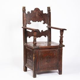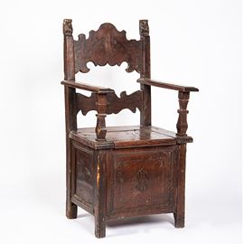 in noce con schienale sagomato, seduta da aprirsi, cm L61xP55xH119