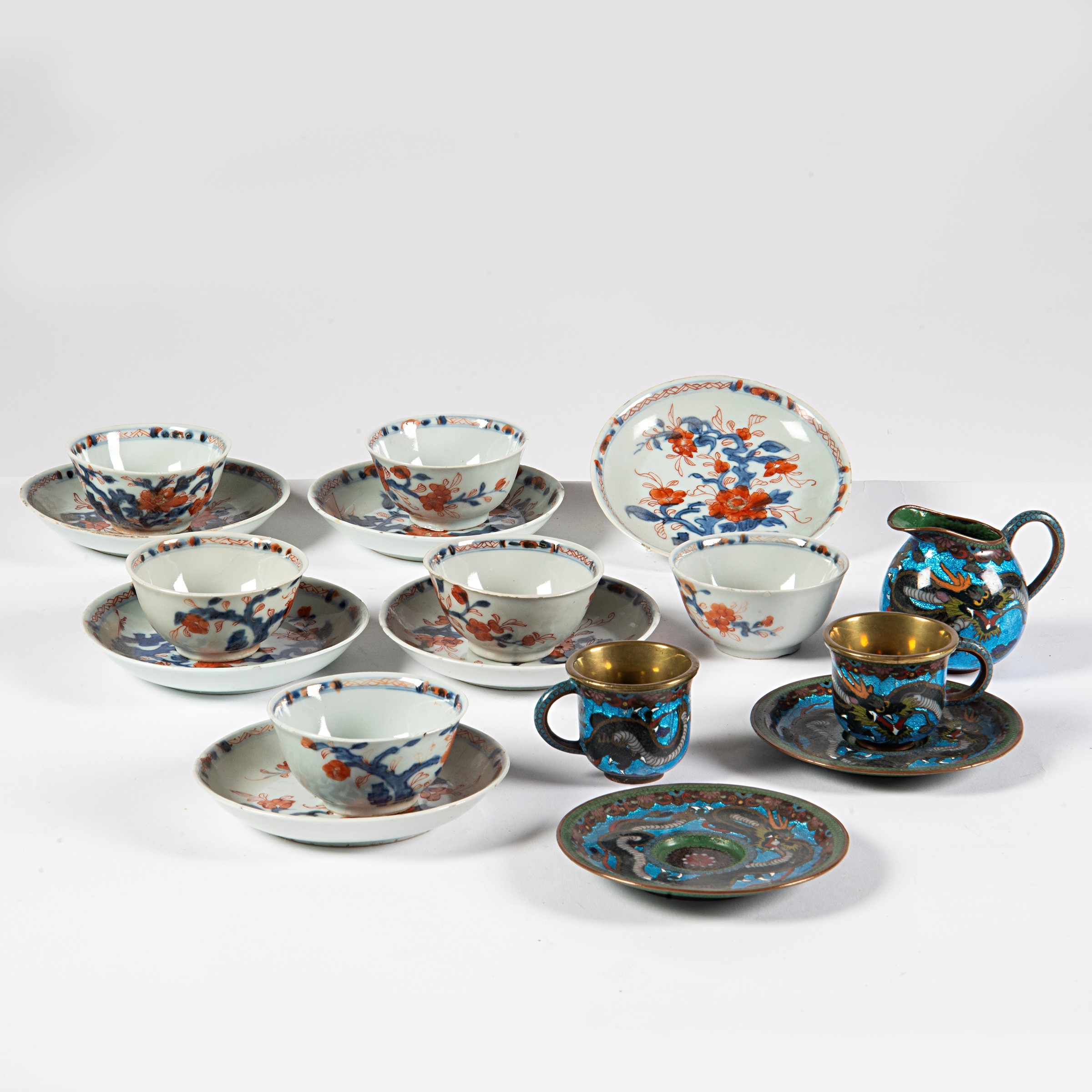 Due tazze, piccola brocca e due piattini, orientali, sec. XX