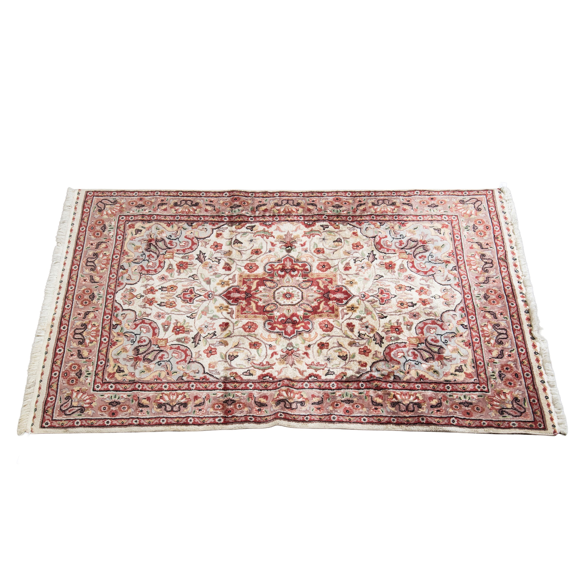 fondo in seta, campo a motivo floreale con medaglione centrale, cm 190x125