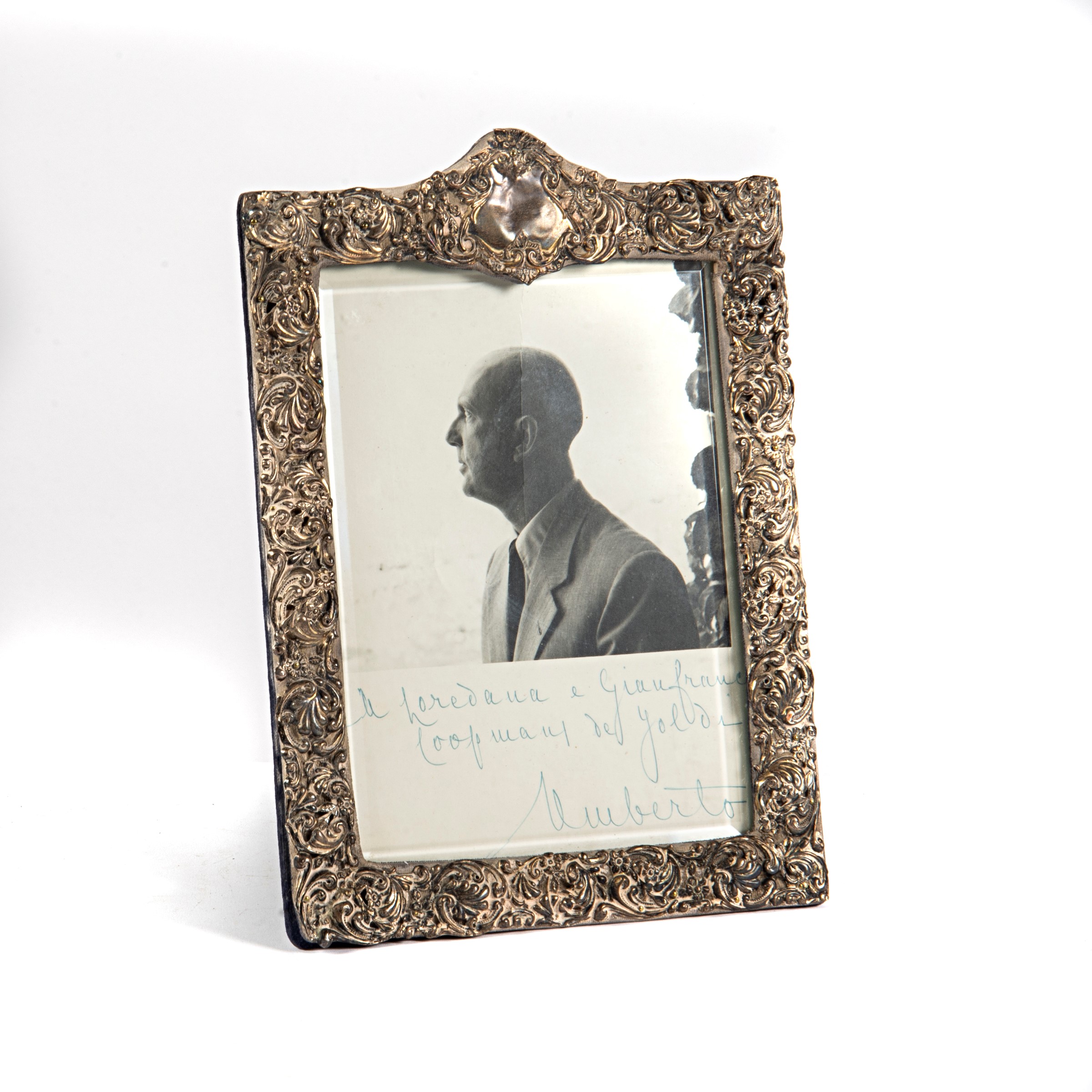 con dedica entro cornice con mostra in argento sbalzato, cm 20x28