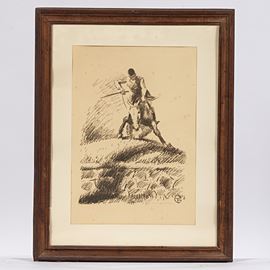 un carboncino e due acquarelli su carta, cm 43x30; cm 47x30 e cm 34x27