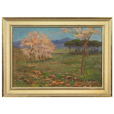 olio su tela, cm 39x57, firmato, dedicato e iscritto “Roma -Torrenova” in basso a sinistra