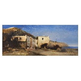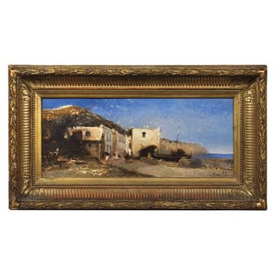 olio su tavoletta, cm 16x38, firmato in basso a destra