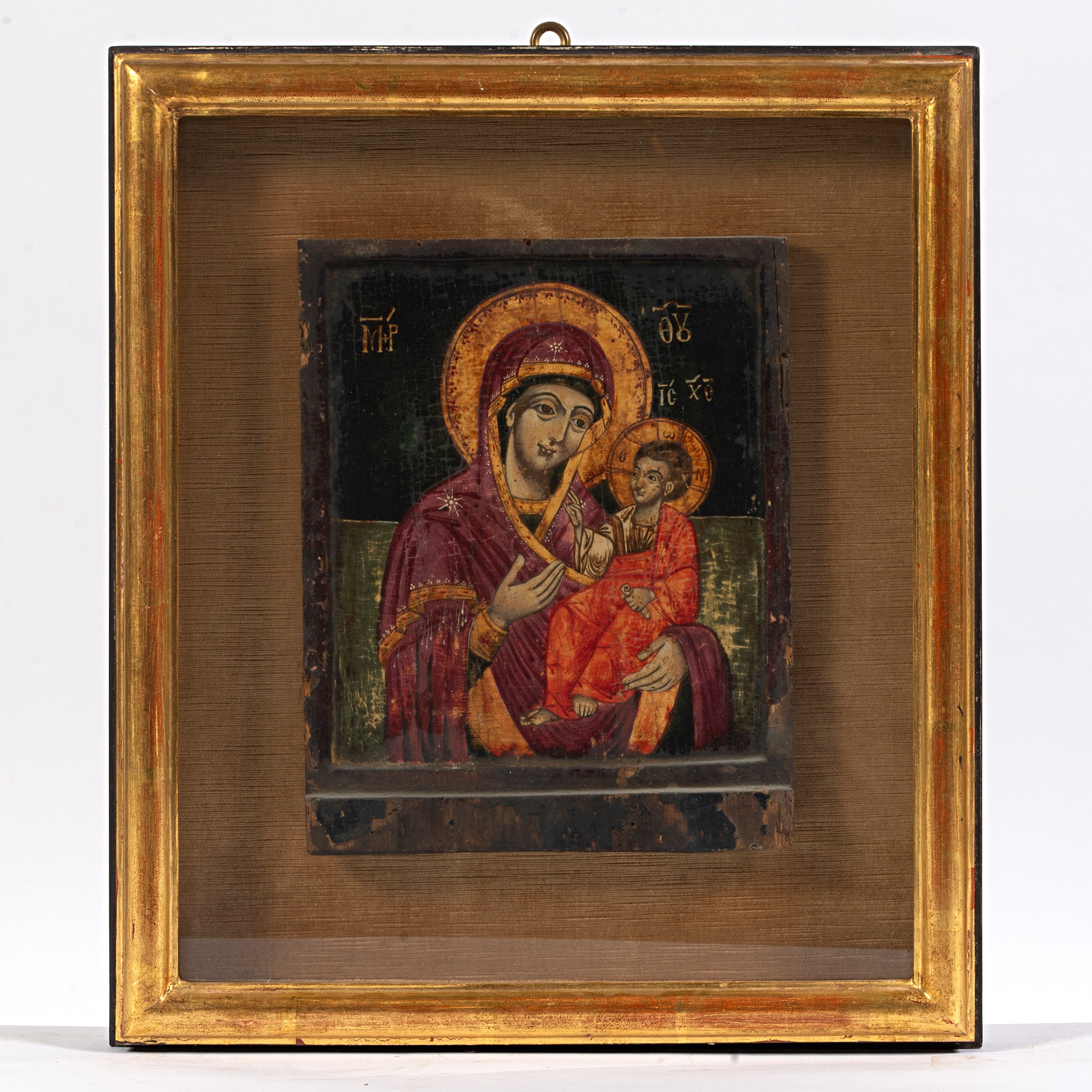 olio su tavola, cm 26x21, entro teca in vetro, cm 43x38