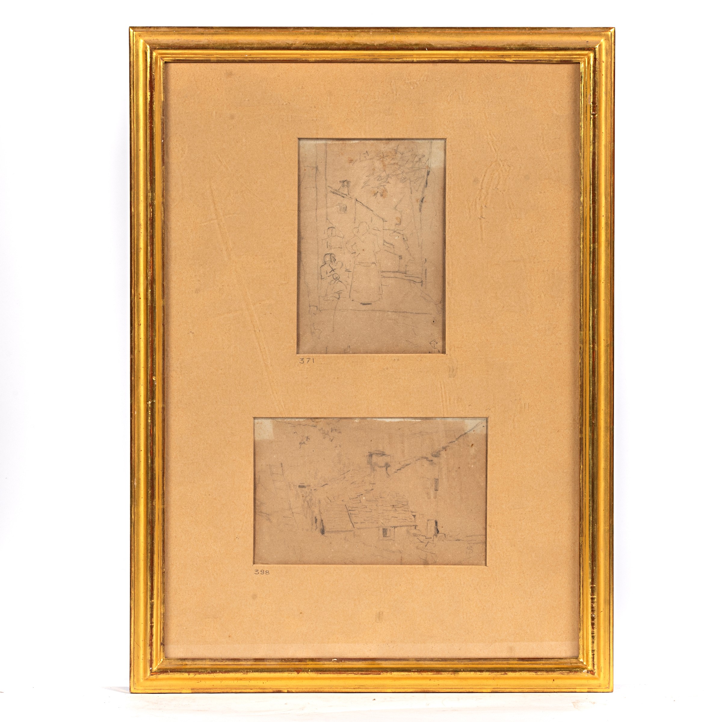 due disegni in unica cornice, cm 18x13 e cm 12x19