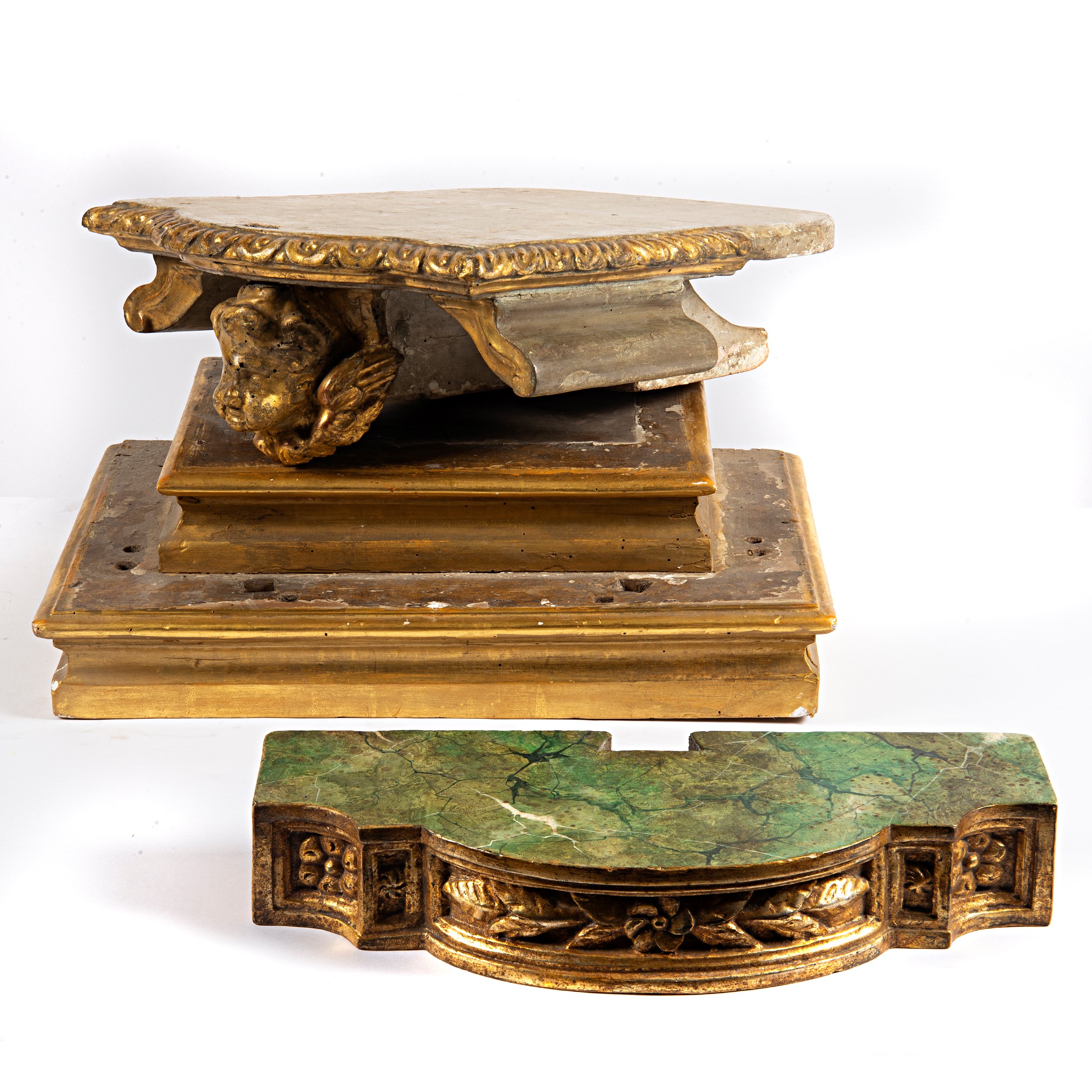 Due basi in legno dorato