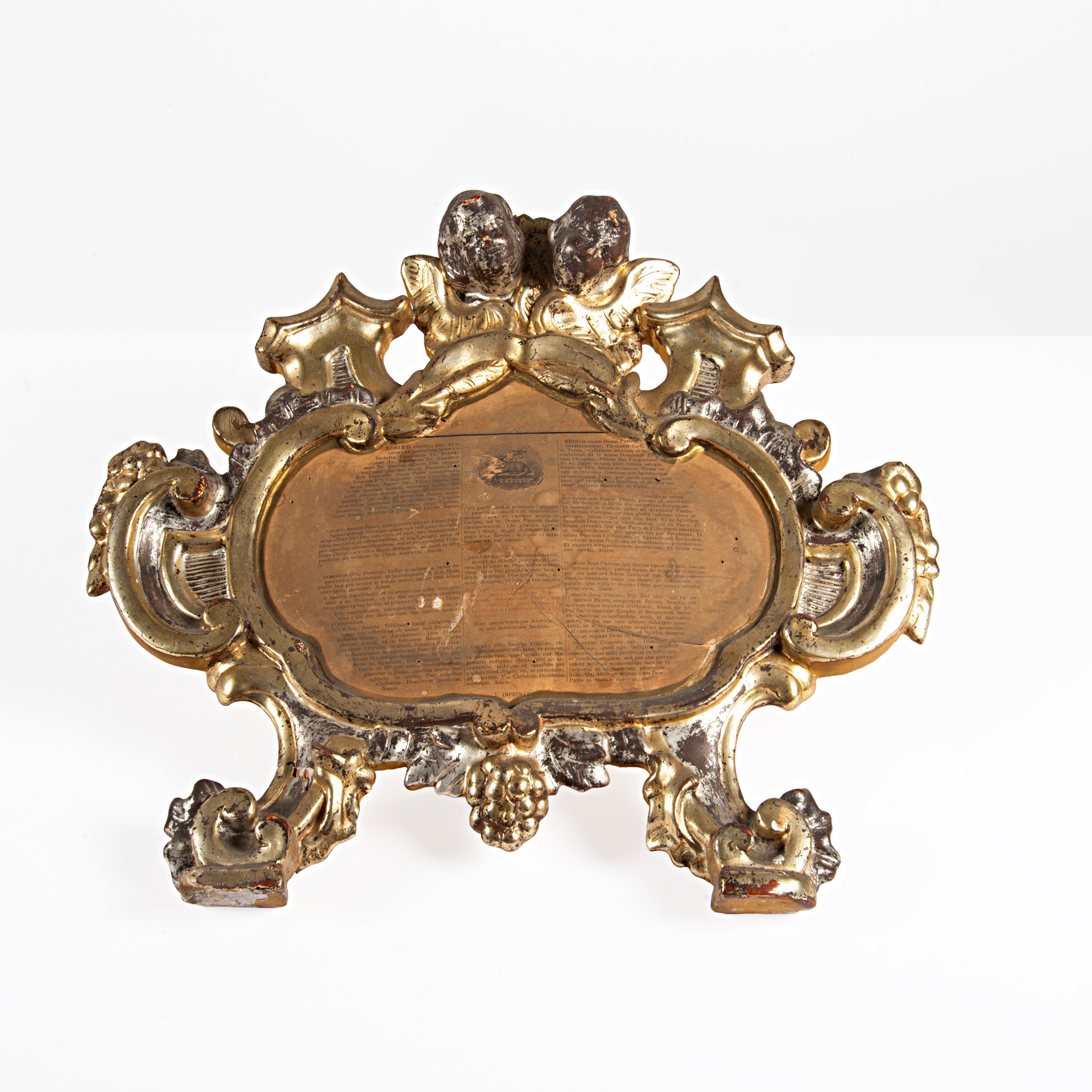 in legno dorato e intagliato con teste di cherubini, cm 47x44