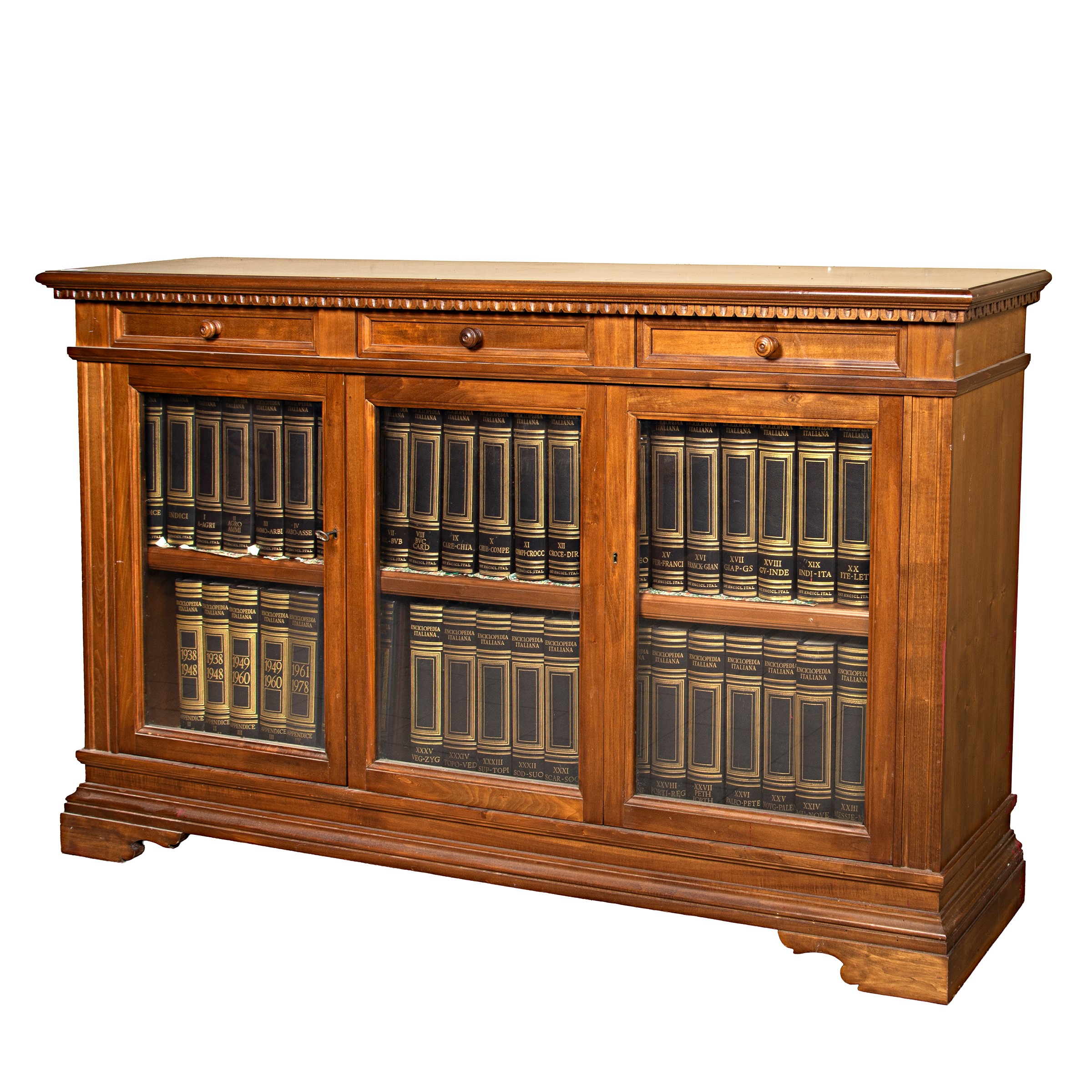 a tre sportelli e tre cassetti, all'interno enciclopedia Treccani composta da 44 volumi, cm L176xP35xH107