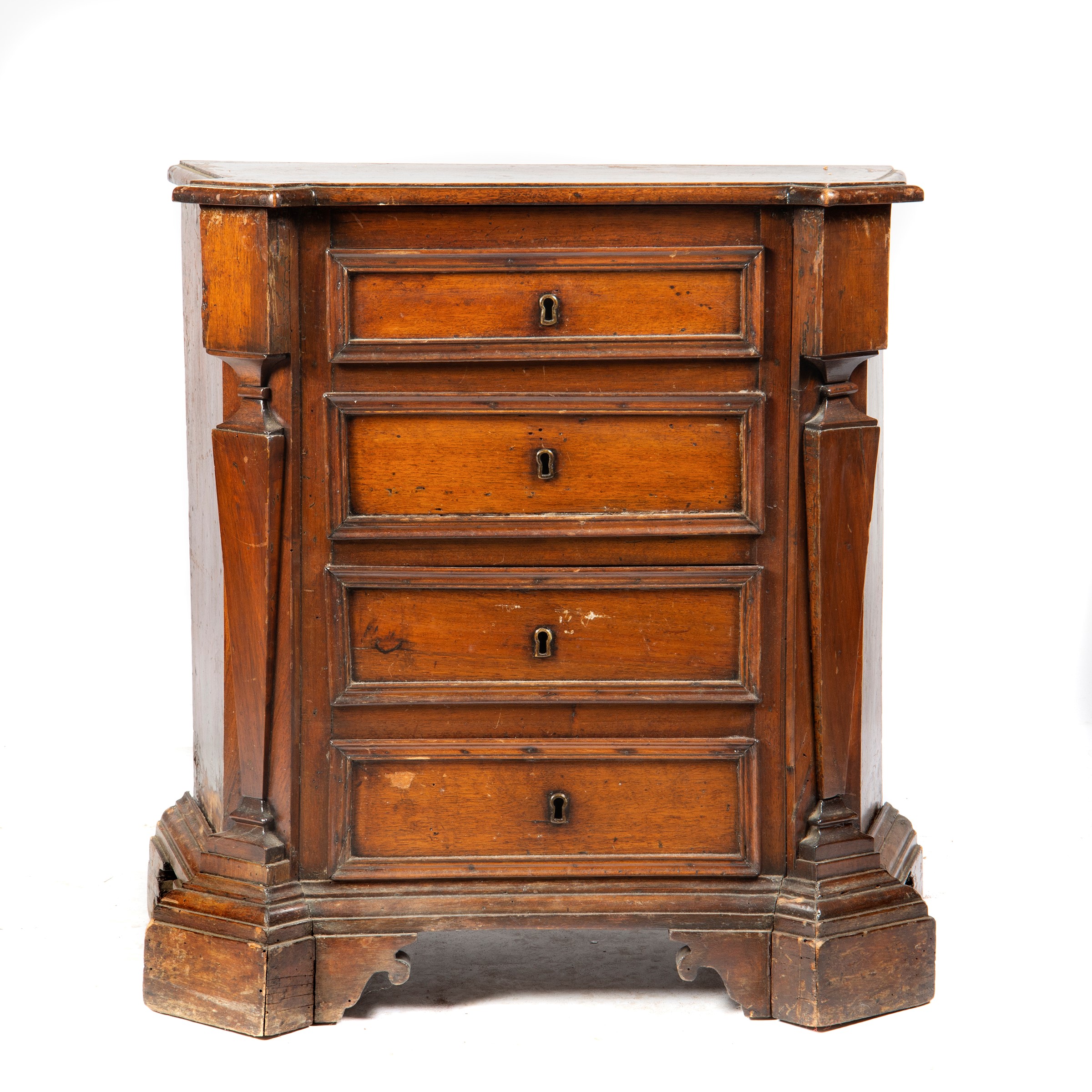 in noce scantonato a quattro cassetti sformellati