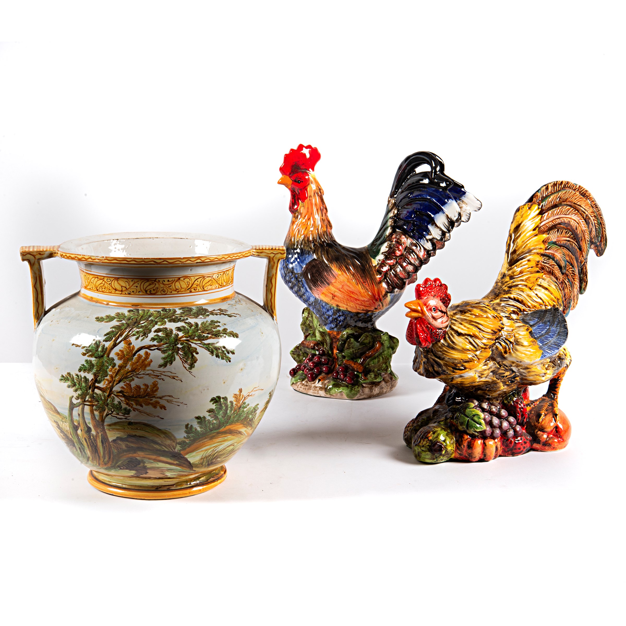 in ceramica e maiolica, alt. cm 41, alt. cm 37 e alt. cm 33
