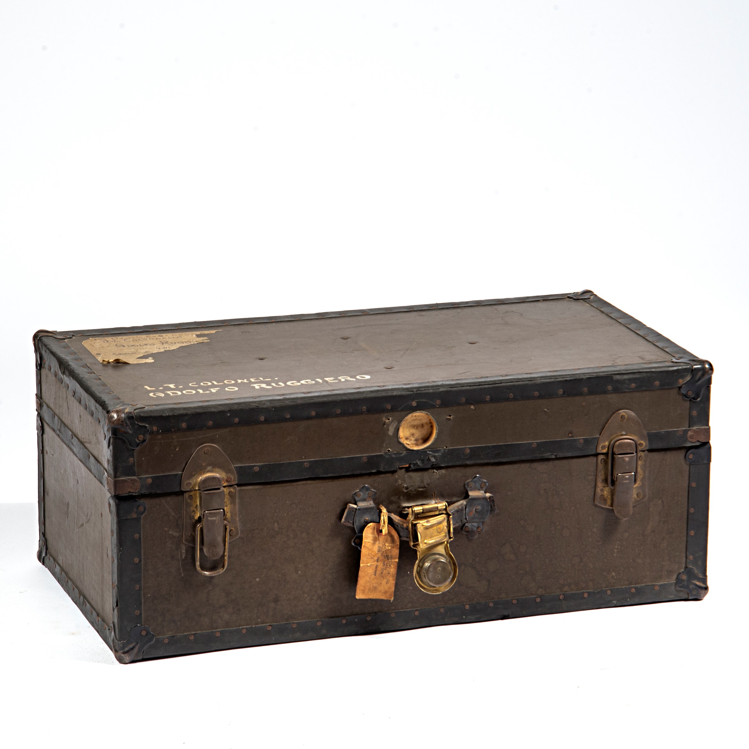 in cartone e metallo, all'esterno etichetta "Colonnello Ruggero Adolfo 1911", cm L77xP42xH32