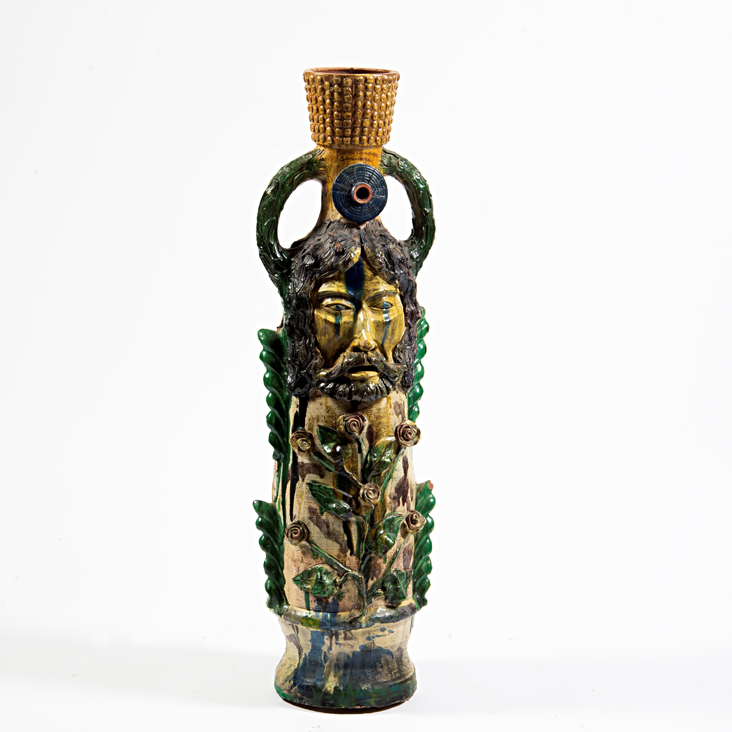 scultura in terracotta policroma smaltata, cm 38x122, firmata Paolo Condurso