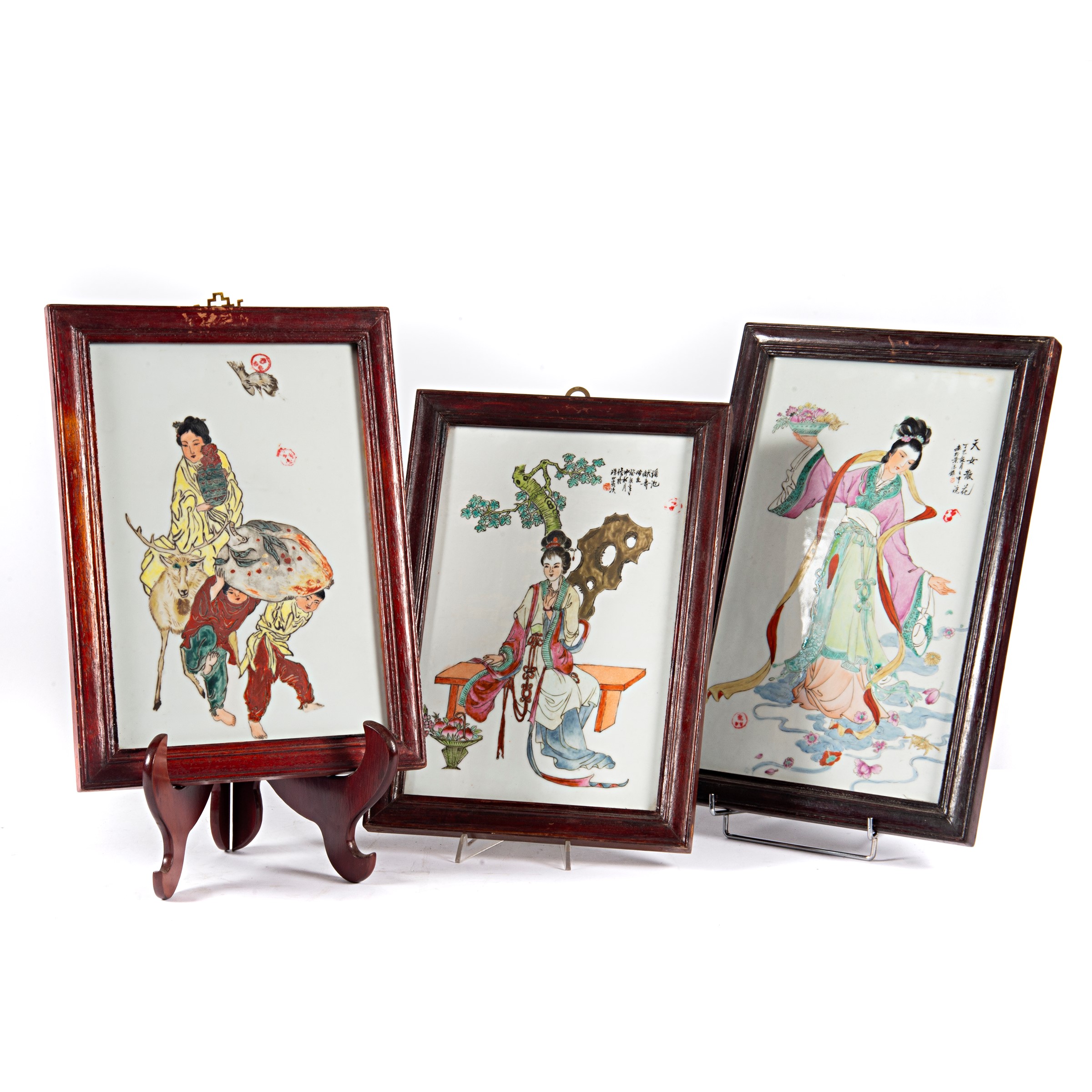 tre ceramiche pitturate, cm 43x26, cm 37x24 e cm 36x24