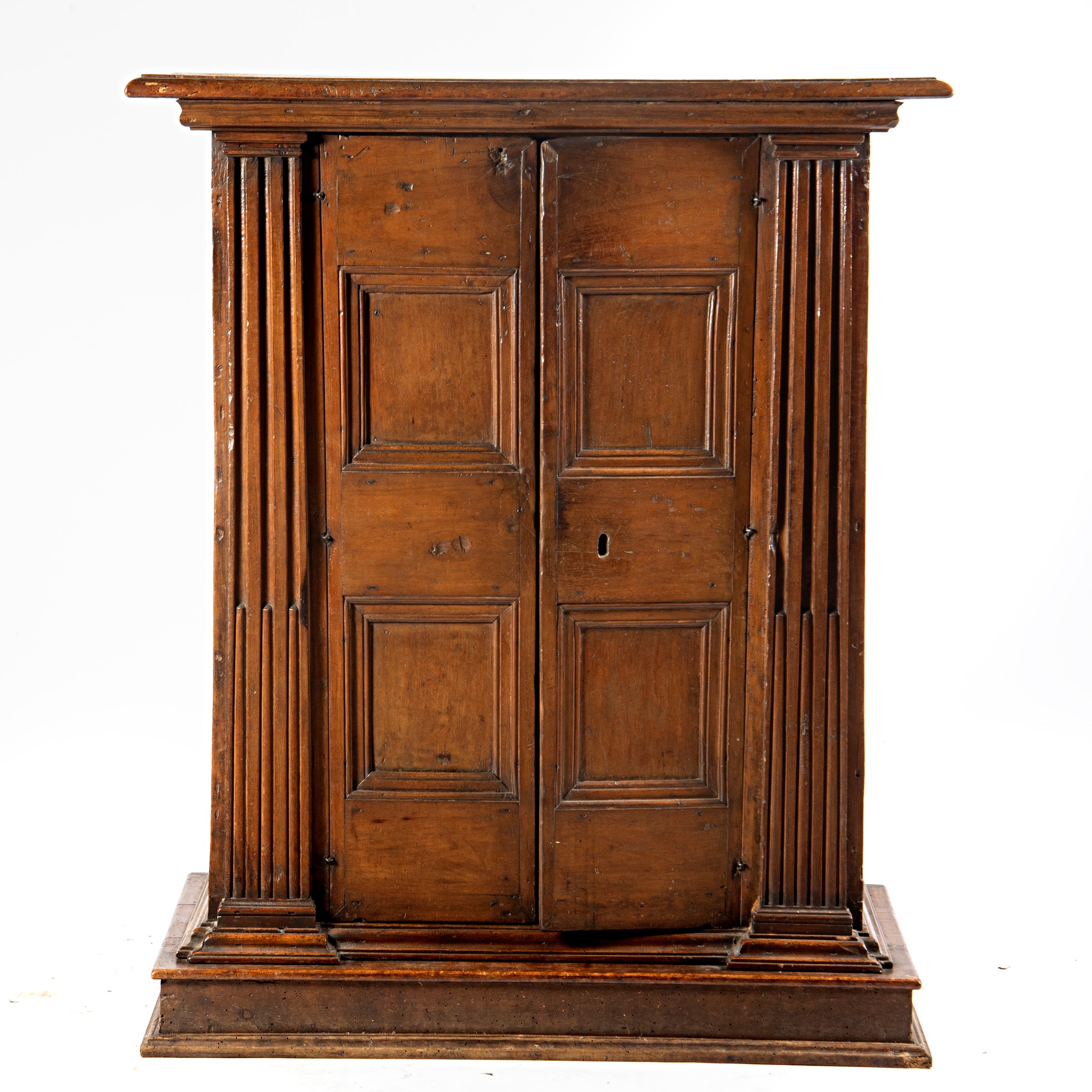 in noce a due sportelli sformellati, laterali scanalati, con base, cm L100xP56xH122