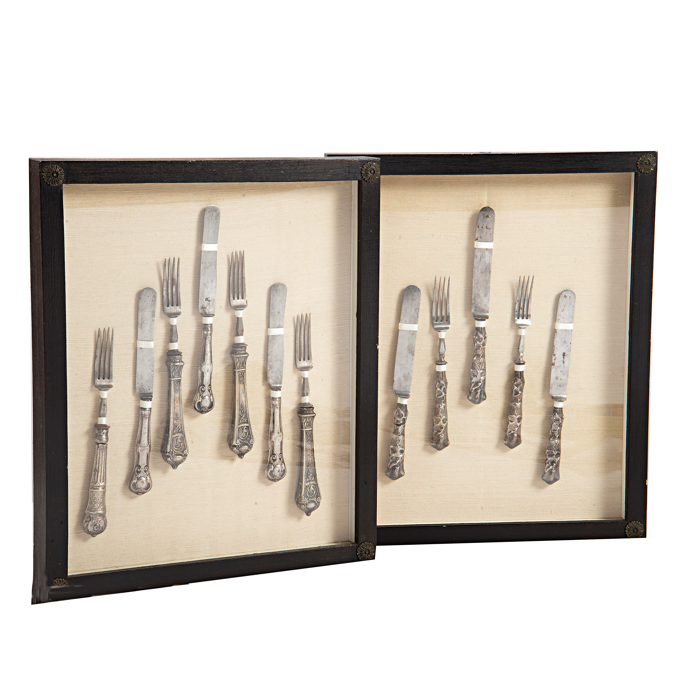 Coppia di teche contenenti posate