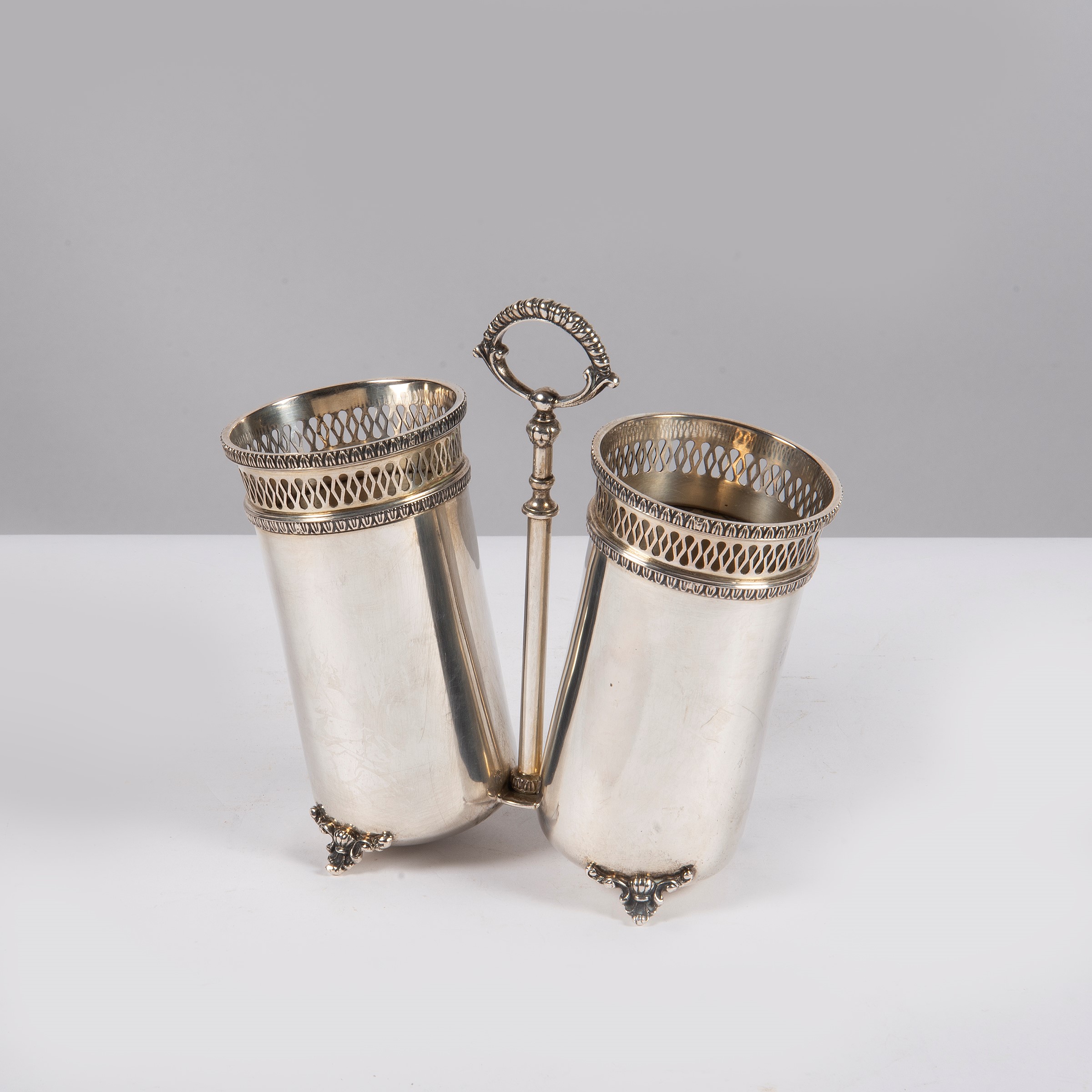 in argento con due contenitori, alt. cm 18, g 490