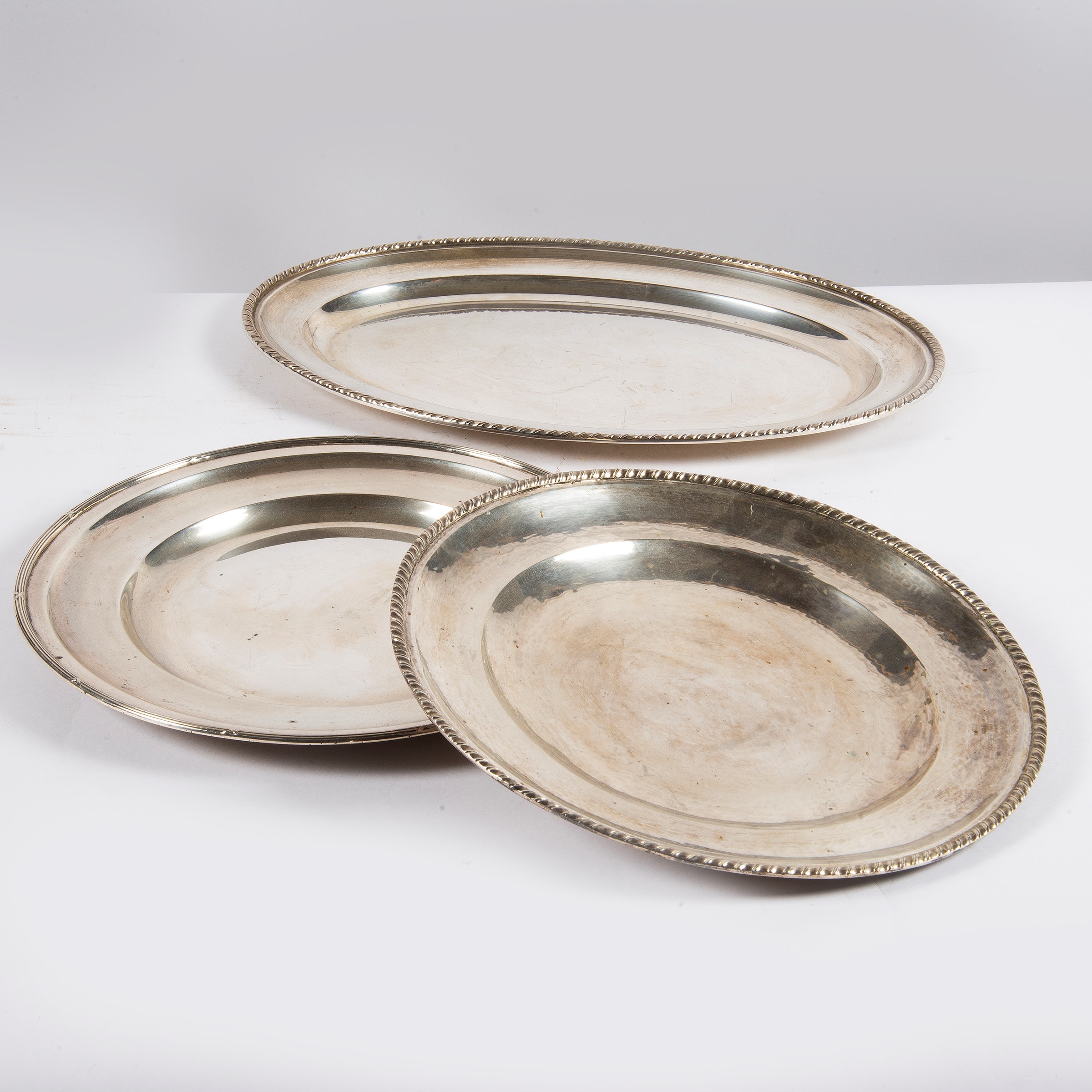 in argento due di forma circolare ed uno ovale, diam. cm 33 e cm 46x31, complessivi g 2600