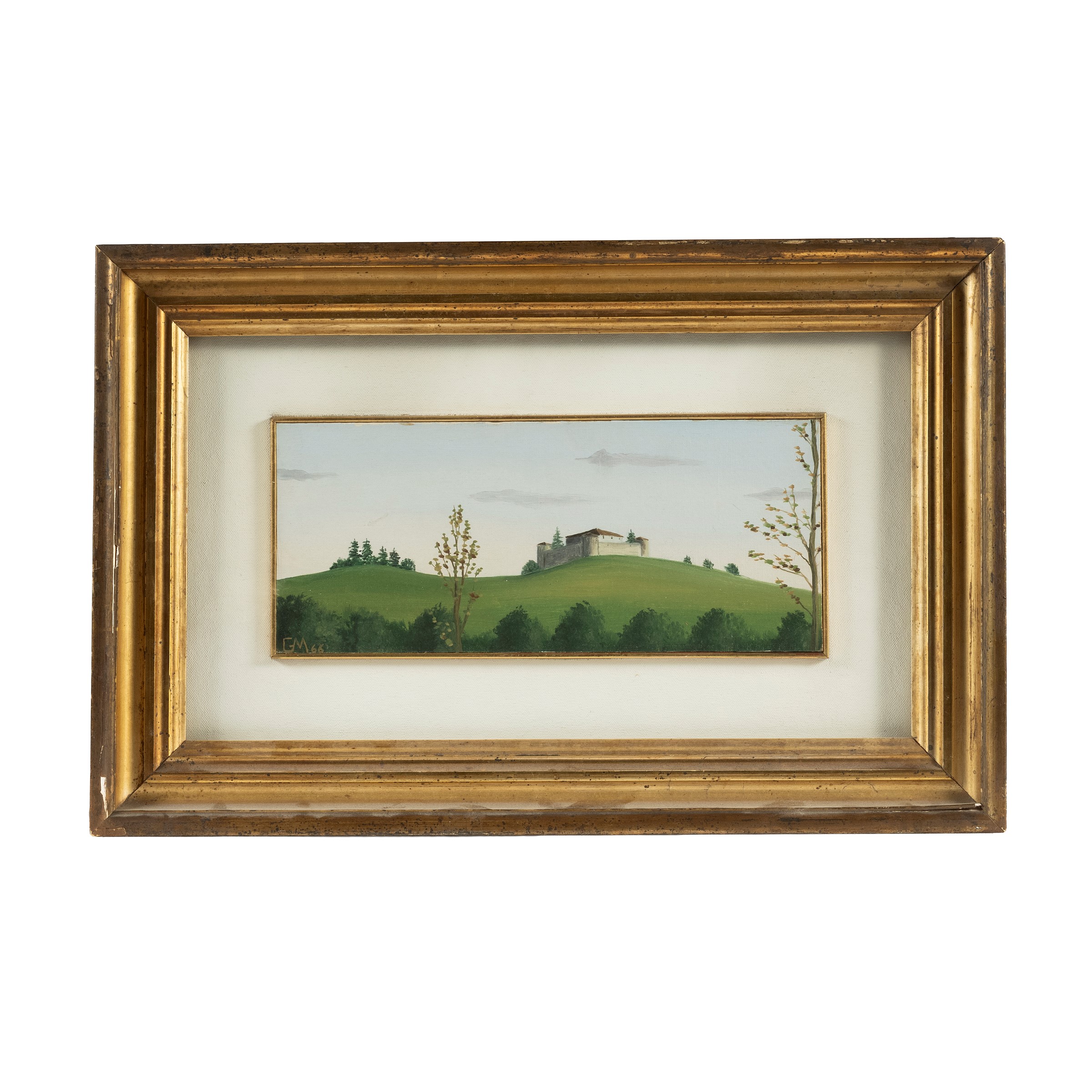 olio su cartone telato, signato e datato '66 in basso a sinistra, cm H14,5xL34