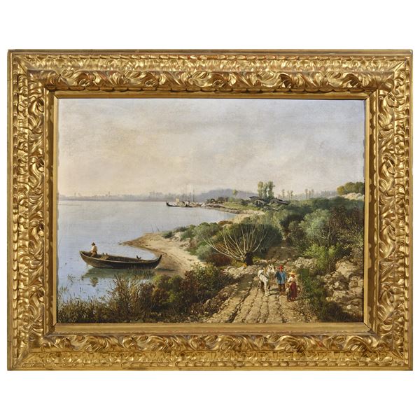 olio su tela, firmato e datato "1870" in basso a destra, cm 51,5x74