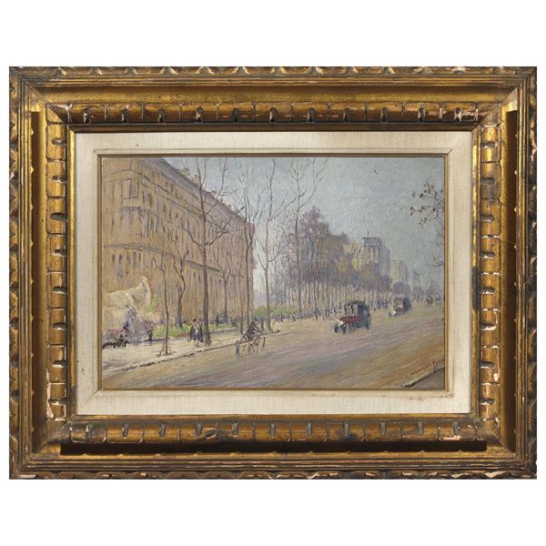 olio su tela, firmato e iscritto "PARIGI" in basso a destra, cm 33x49