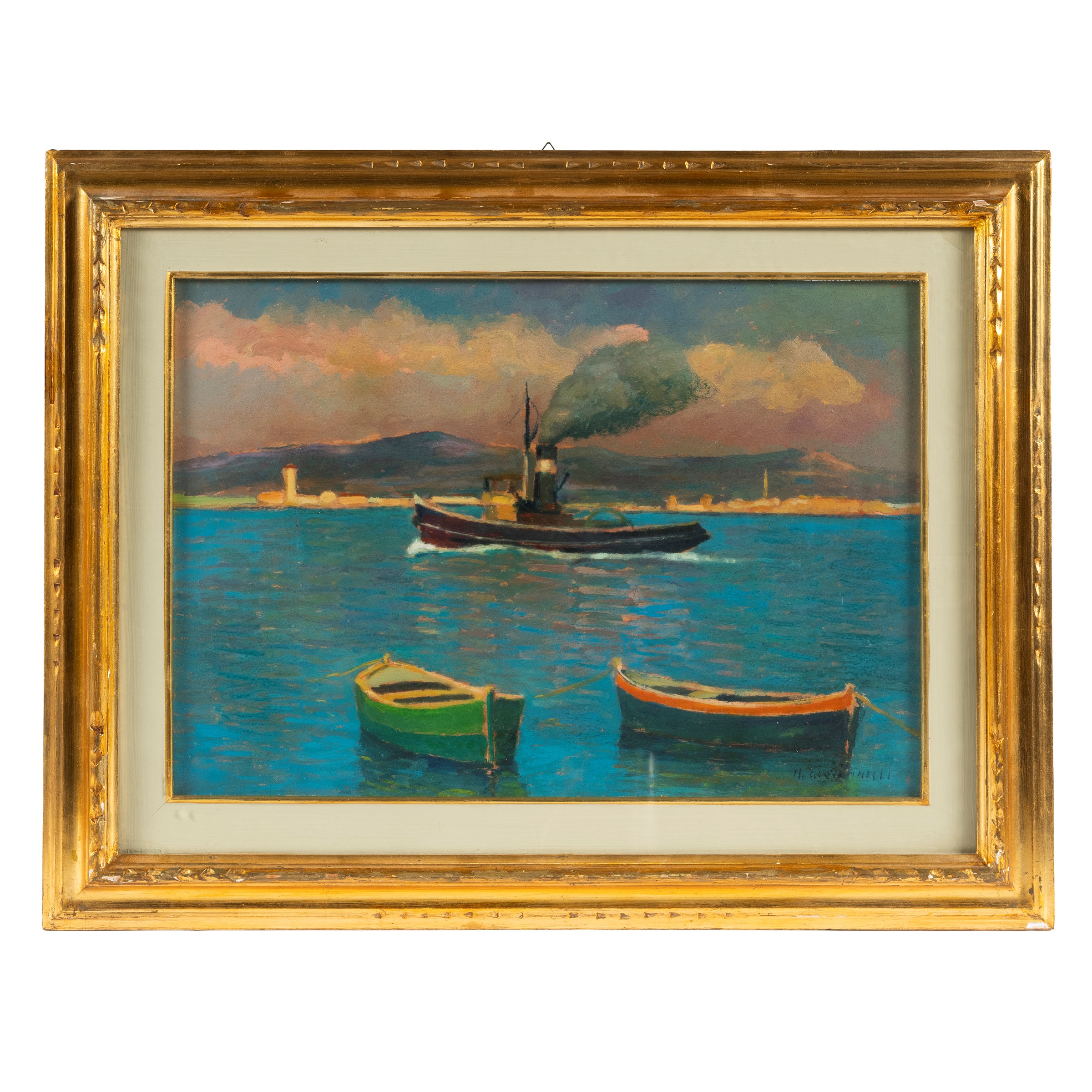 olio su tavola, firmato in basso a destra e firmato e intitolato al recto, cm H34xL49