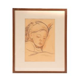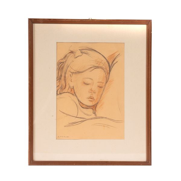 matita nera e rossa su carta, firmato in basso a sinistra, cm H30xL20