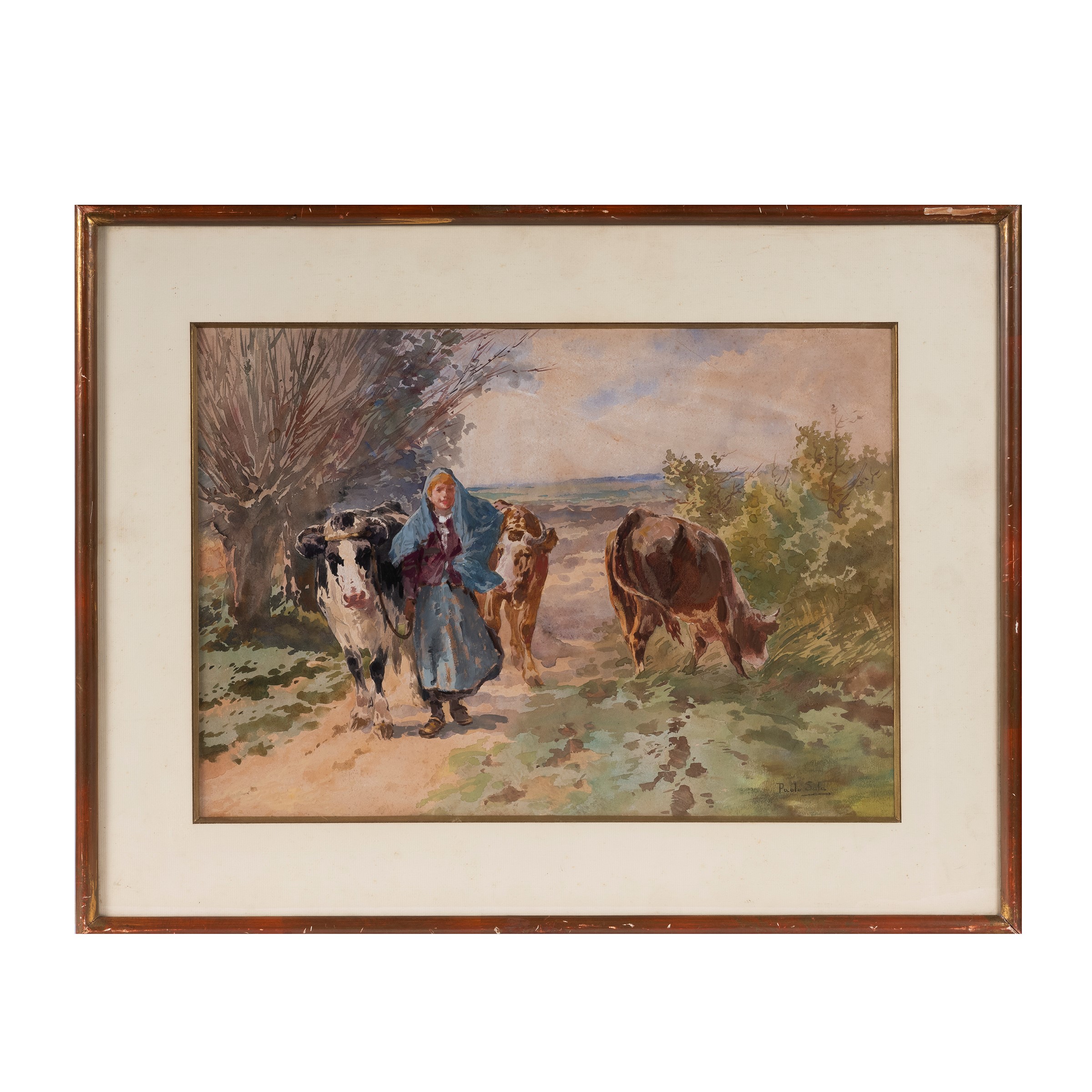 disegno ad acquerello su carta, firmato in basso a destra, cm H37xL51