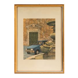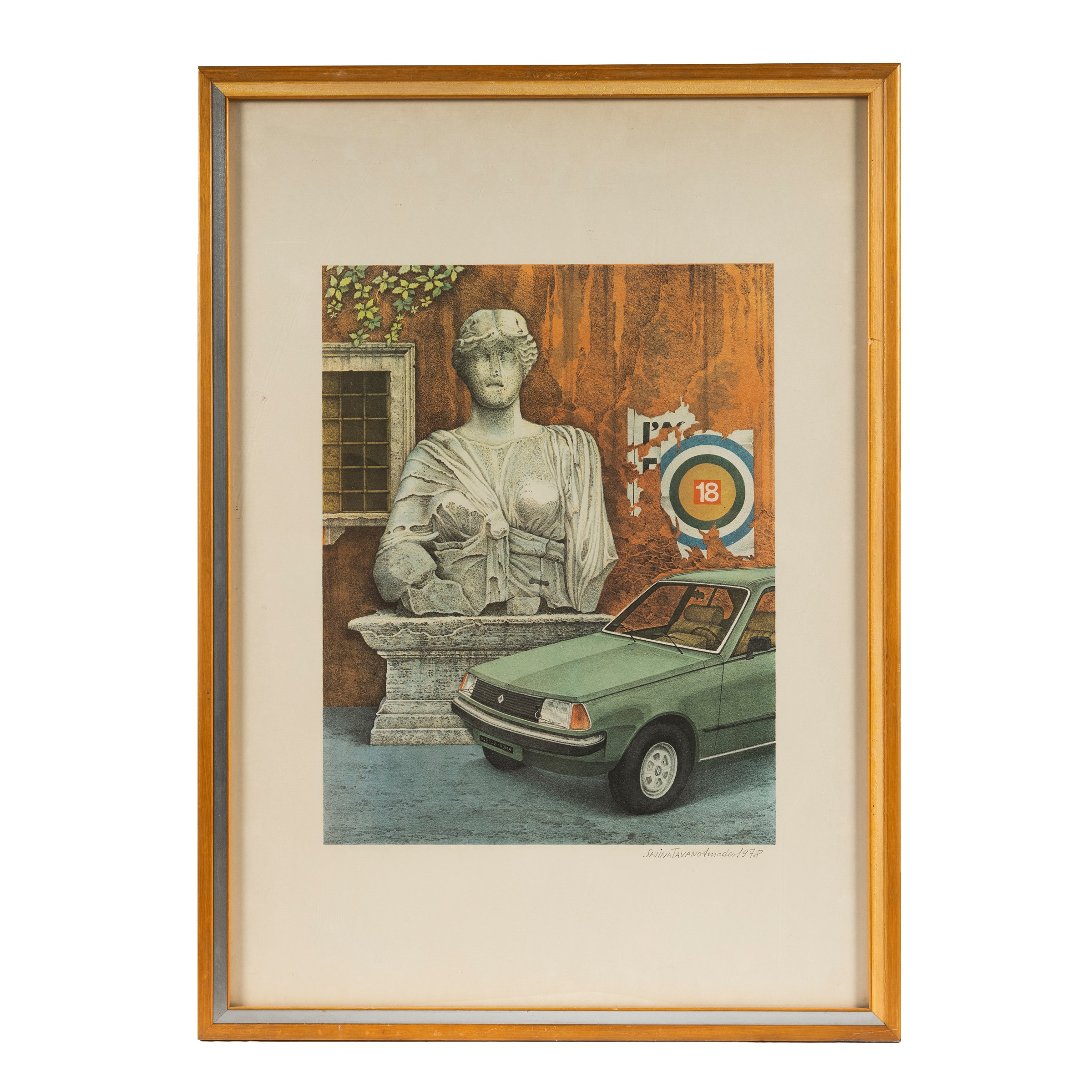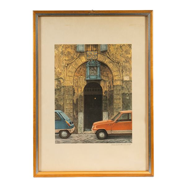 sette poster, firmati in basso a destra, cm H68xL48