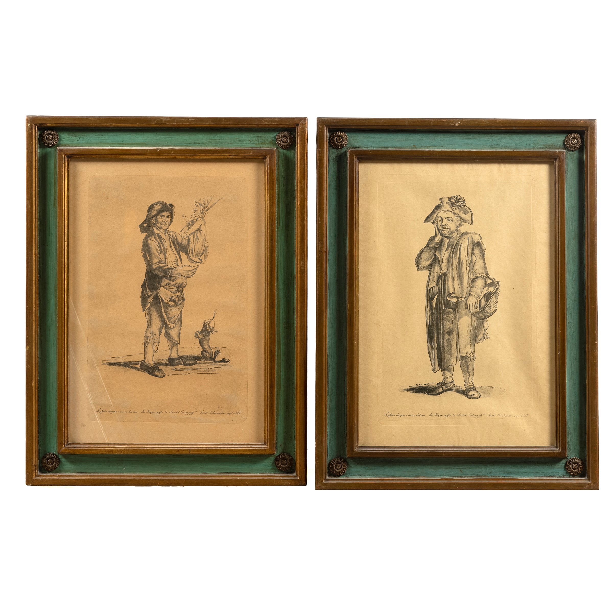 quattro stampe su carta, in cornice laccata, cm H42xL27