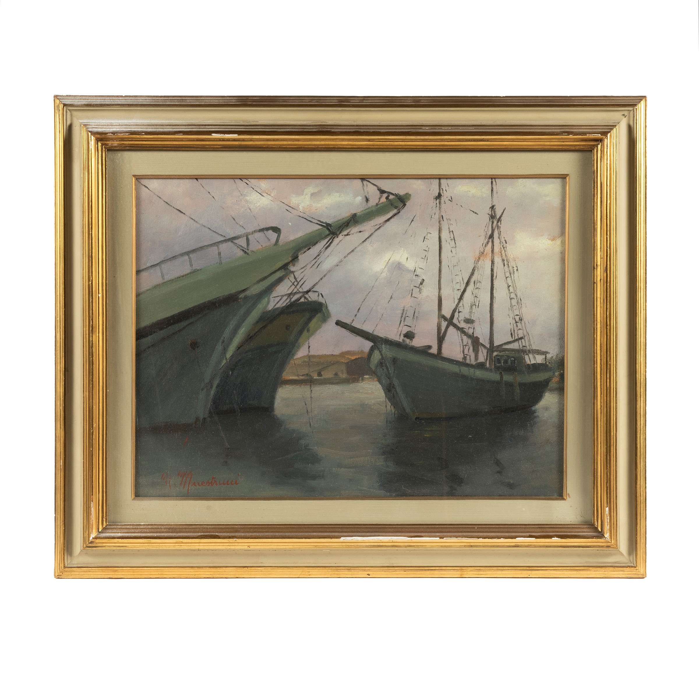 olio su tavola, firmato in basso a sinistra, intitolato e datato 1948 al recto, cm H34,5xL47