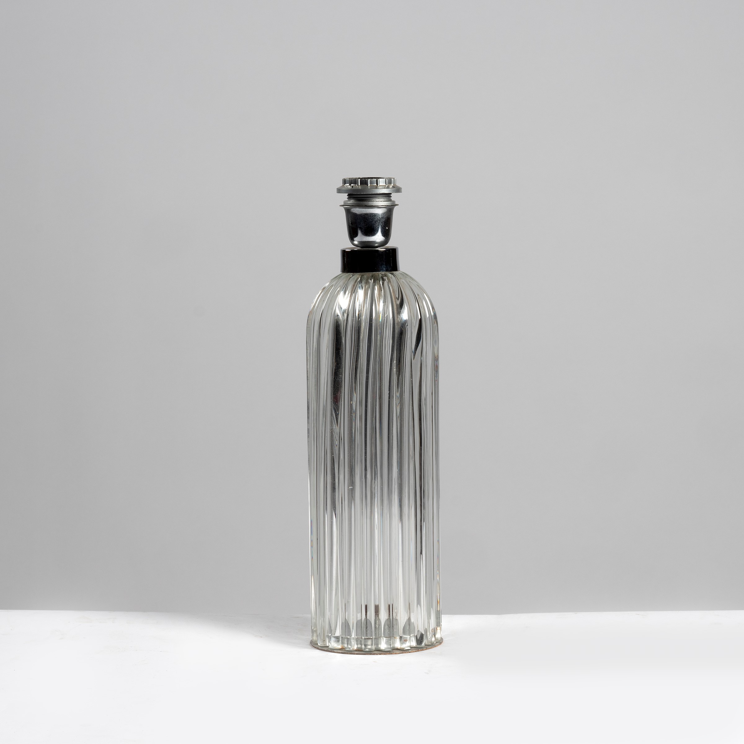 in vetro scanalato, montata a lume da tavolo, cm 12x35
