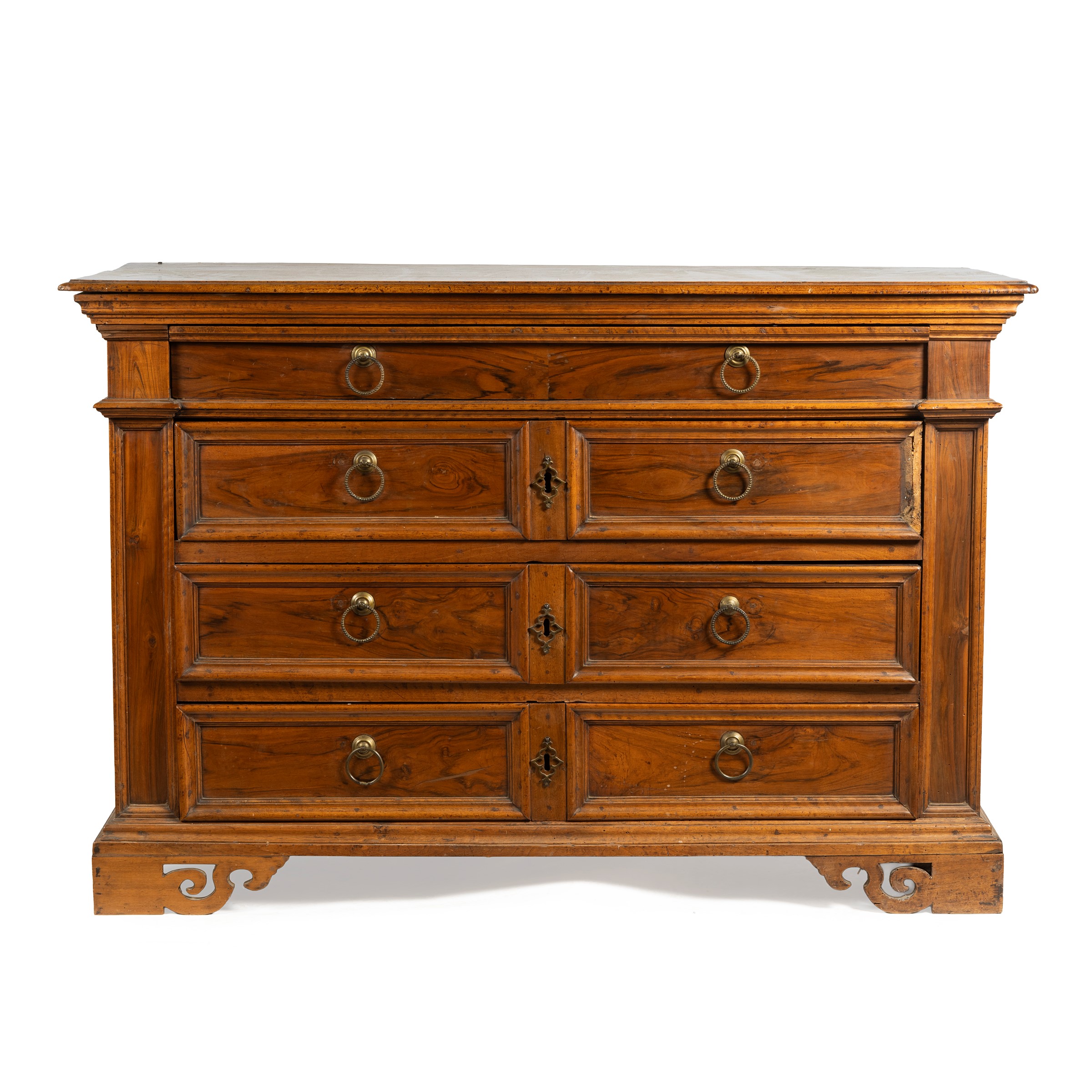 in noce, a quattro cassetti, piedi a mensola, cm L155xP66xH104