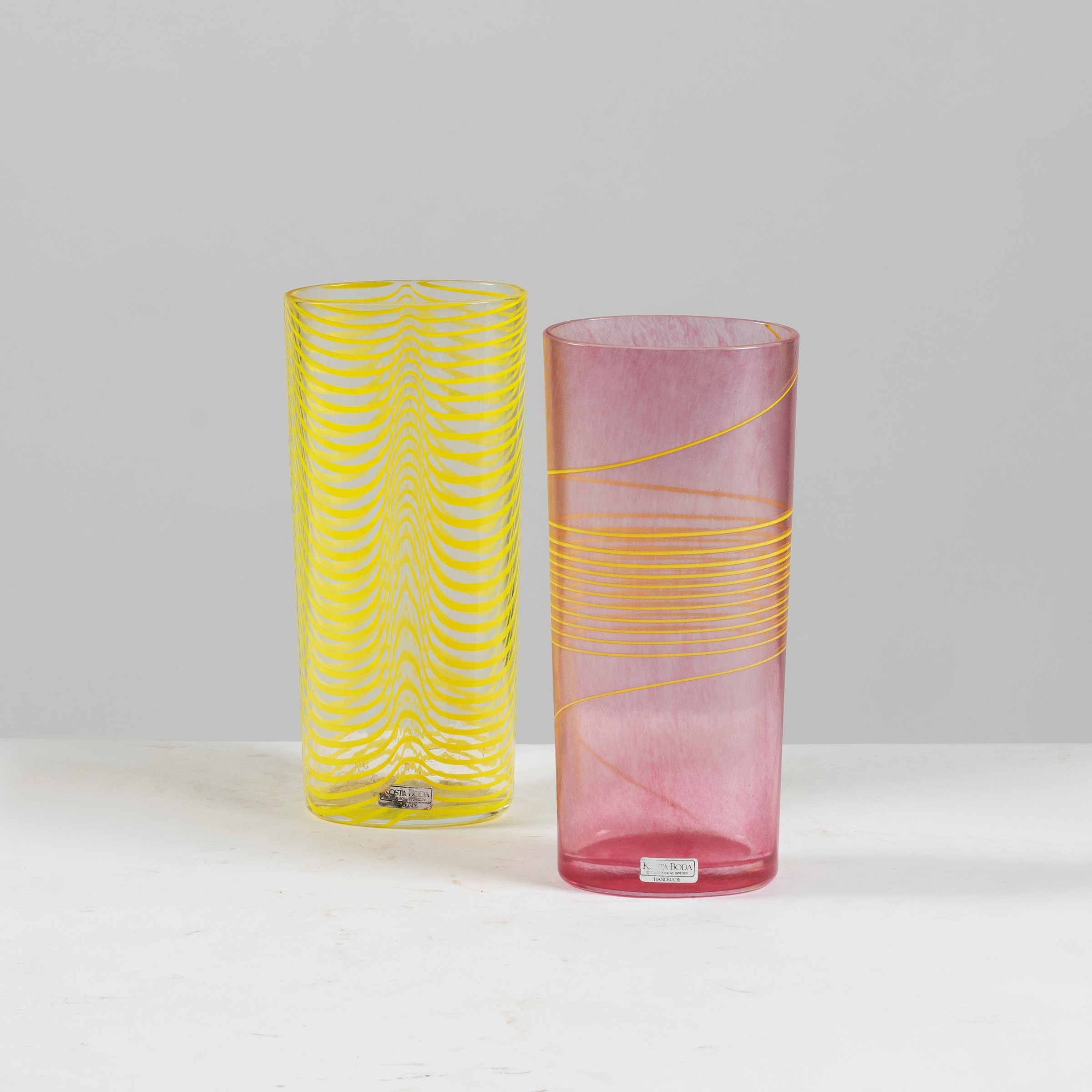 in vetro nei toni del giallo e del rosa, firma a punta sul fondo, alt. cm 21