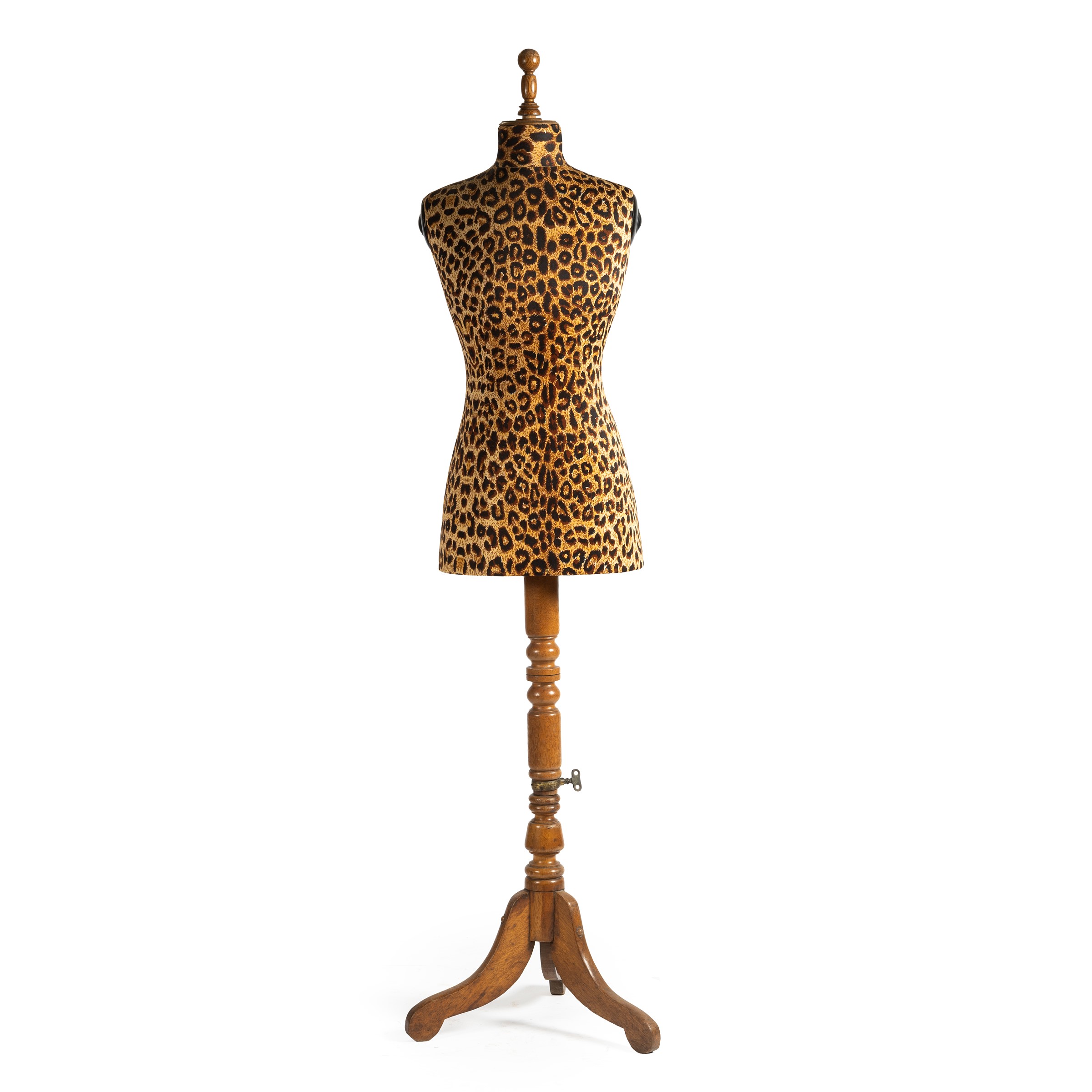 fusto in legno tornito, busto rivestito in stoffa, diam. cm 44 alt. cm 168