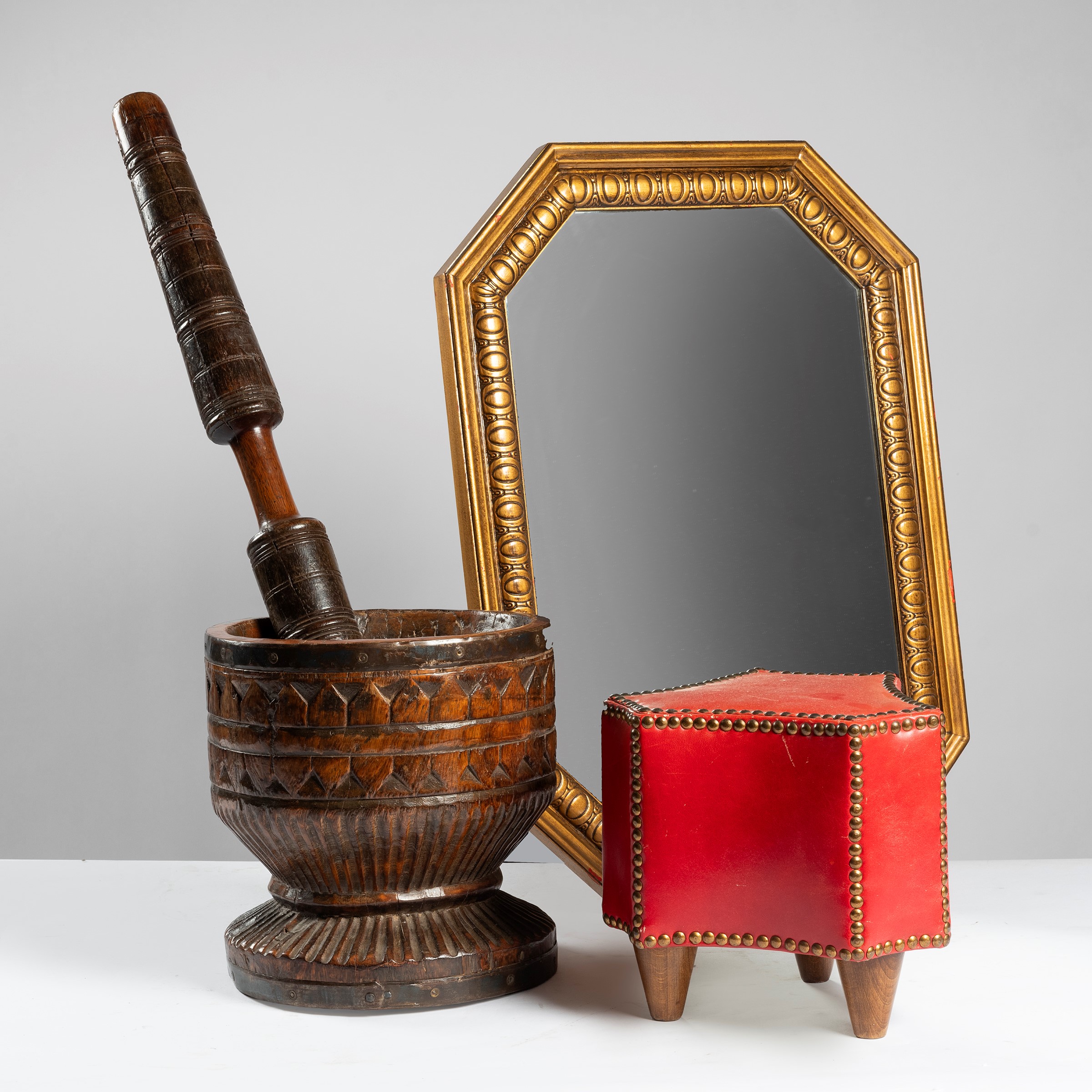 in legno intagliato corredato di pestello, diam. cm 29 alt. cm 30