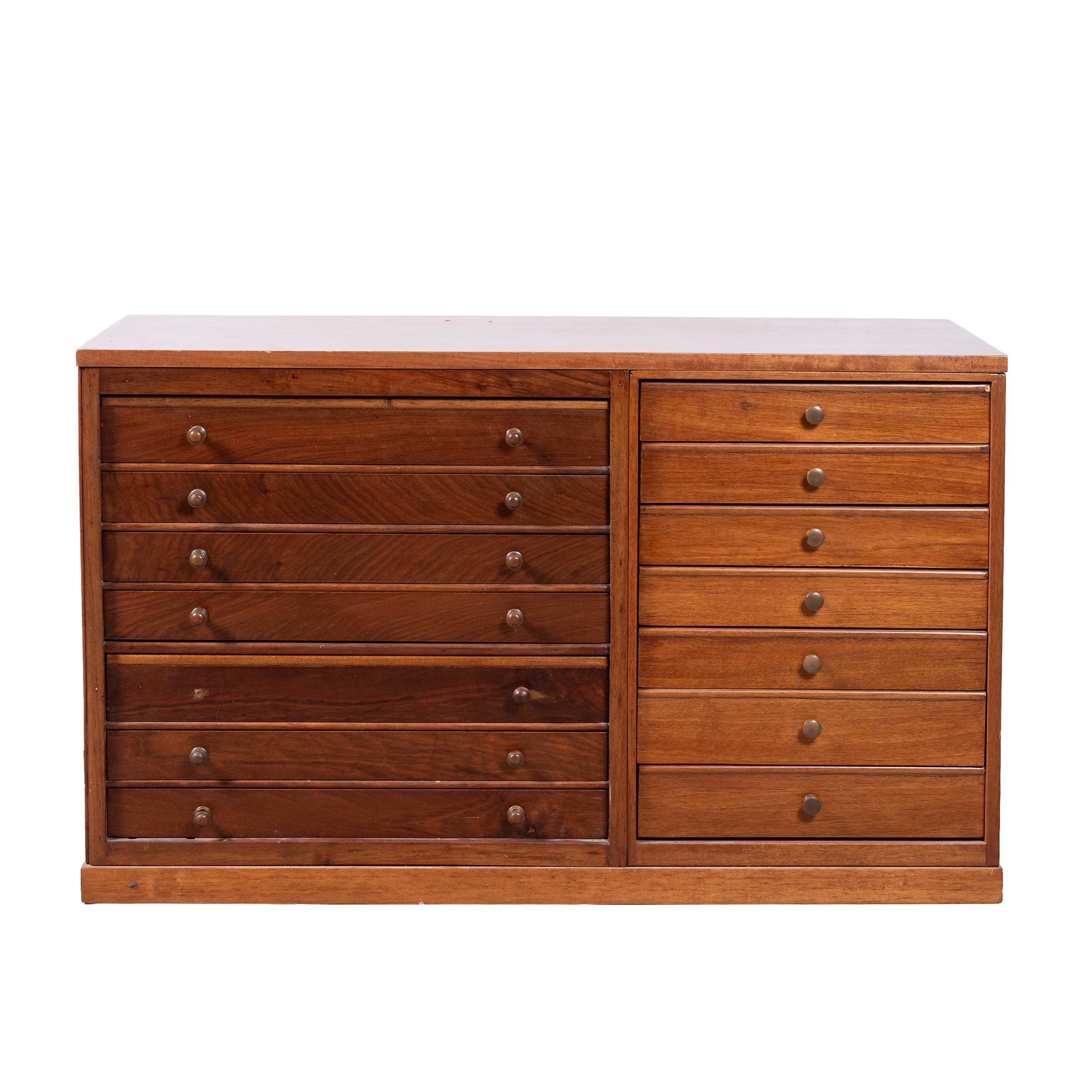 in noce a quattordici cassetti di due larghezze diverse, cm L97xP43xH59,5
