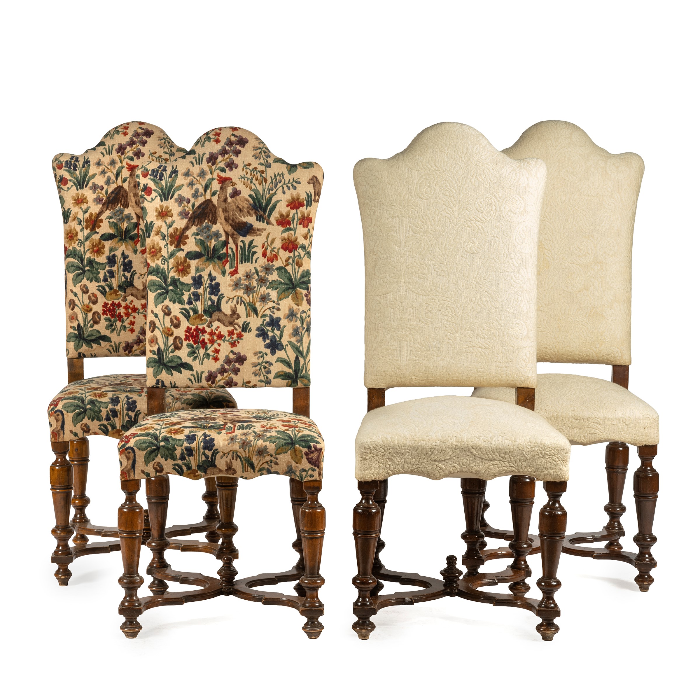 struttura in noce, seduta e schienale imbottiti e rivestiti in stoffa, alt. cm 120 alt. seduta cm 50