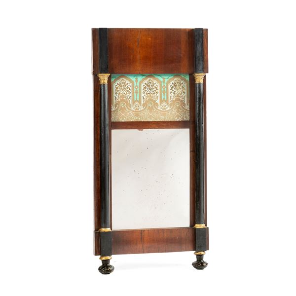 in noce con colonne laterali ebanizzate con finali a capitello dorati, cm L50xH104