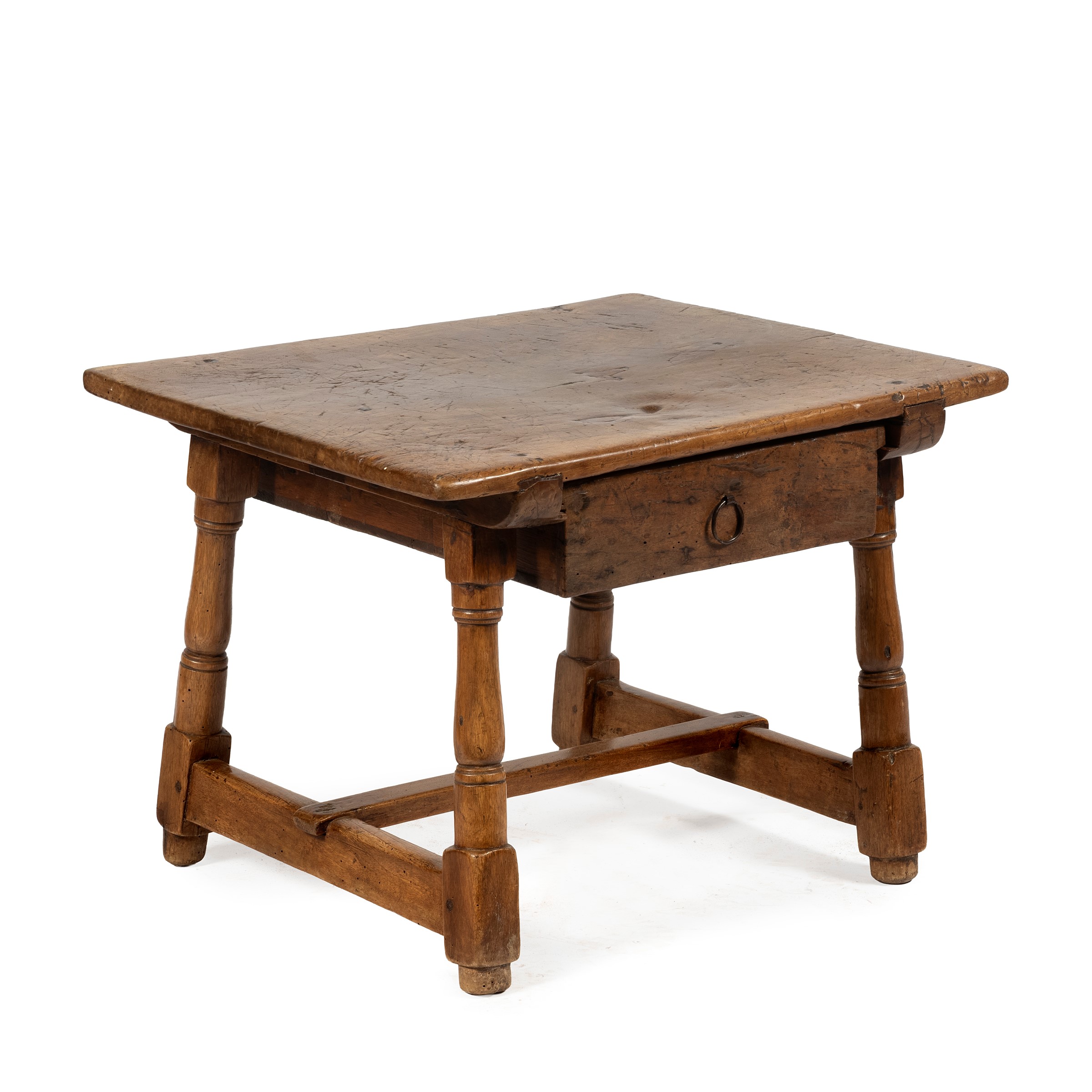 in noce, con un cassetto, gambe tornite, cm L65xP51xH46