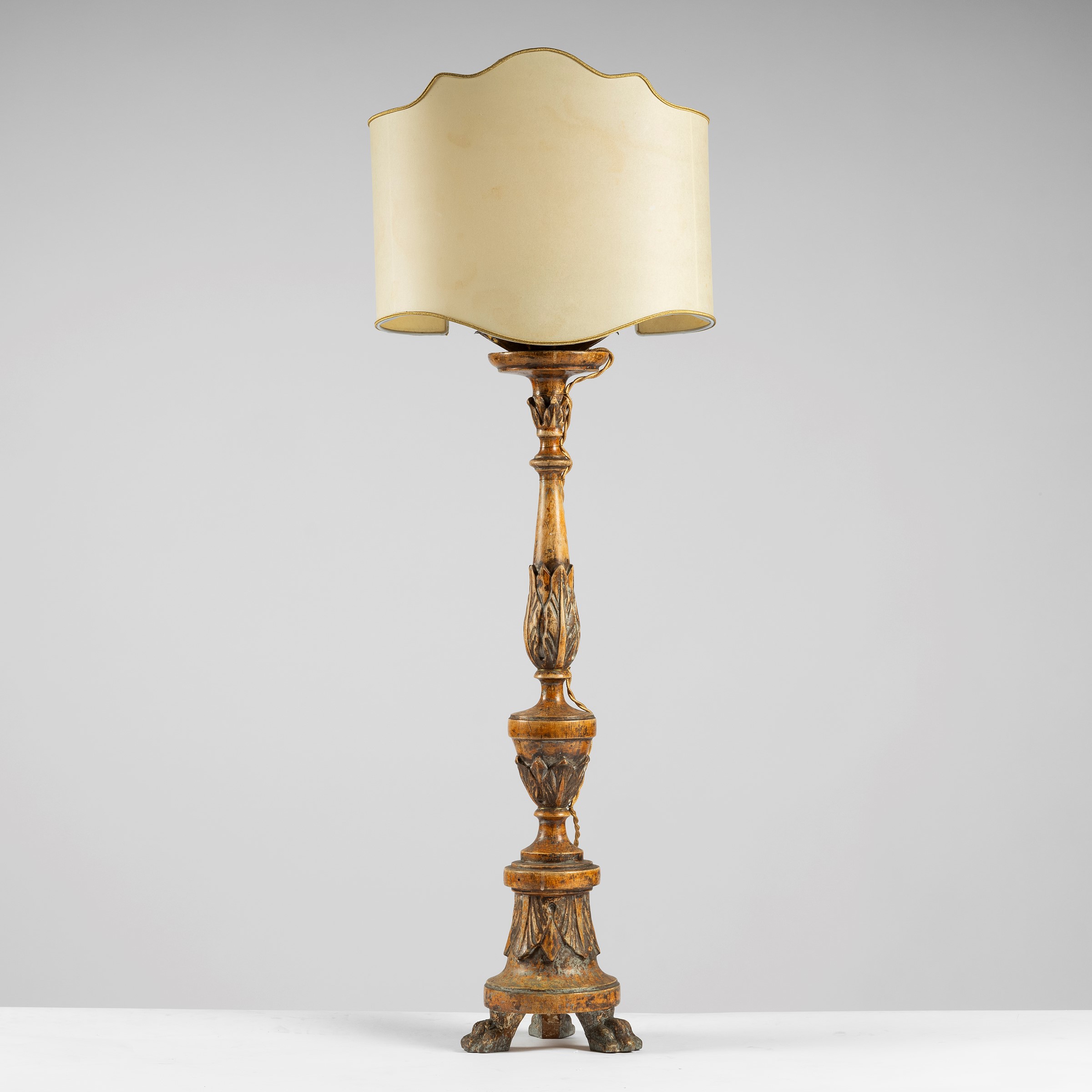 in legno intagliato e laccato, piedi ferini, completo di applicazione elettrica, alt. cm 70