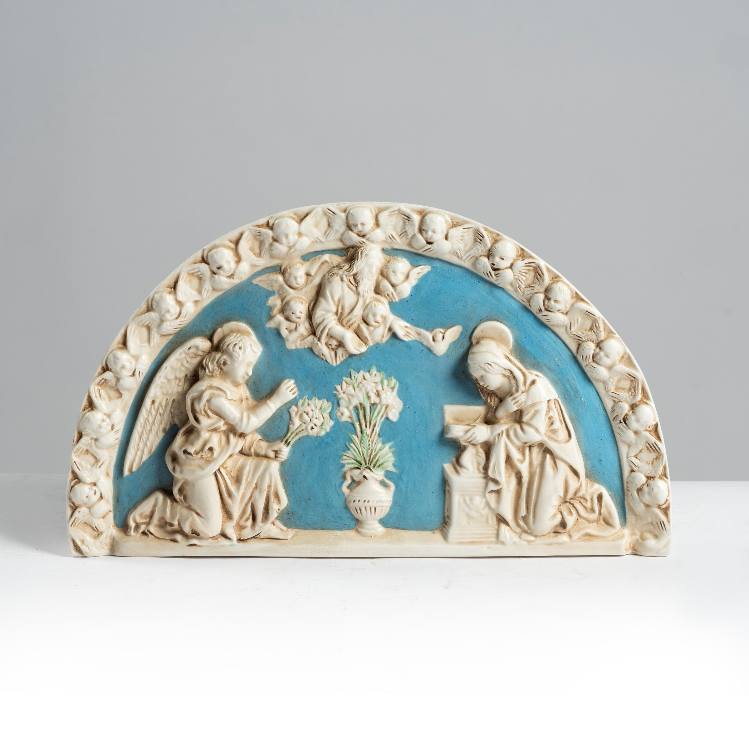altorilievo in maiolica dipinta, cm 22x38